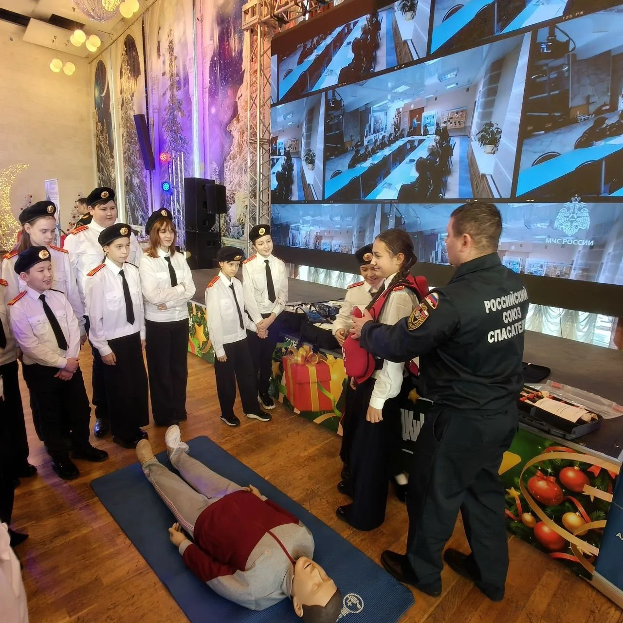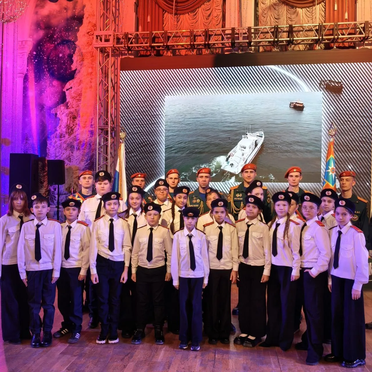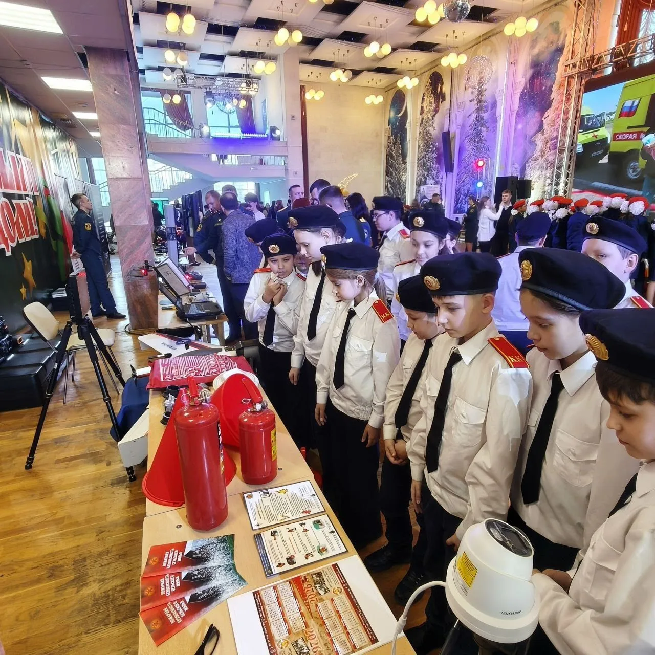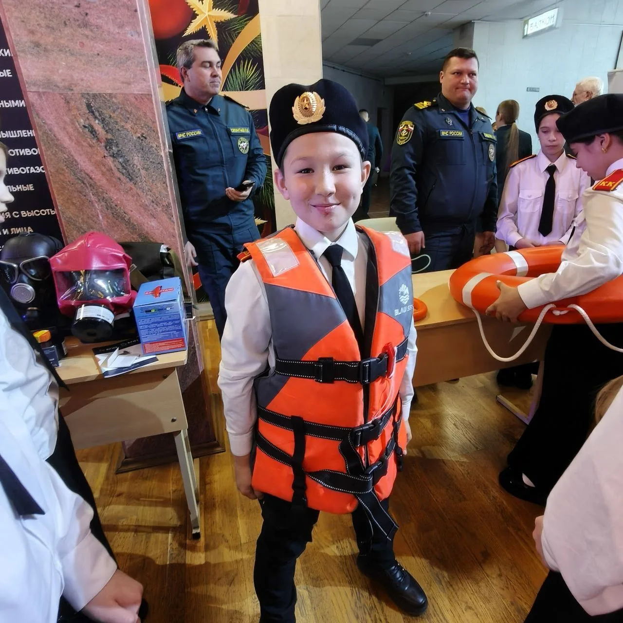 В Областном дворце культуры и искусства города Владимир, в связи с празднованием 35-й годовщины со дня образования МЧС России Главное управление МЧС России по Владимирской области провело торжественное собрание. Это очень важное мероприятие посетили наши кадеты. Ученики 5в смогли не только познакомиться с героями, которые стоят на защите населения и всегда готовы придти нам на помощь, но и попробовали себя в роли спасателей. Ребята стали участниками интерактивной выставки, которая посвещена спасательному делу и пожарной безопасности. Сотрудники МЧС показали на деле, как используют различные инструменты. Кадеты узнали как правильно использовать защитные маски, спасательный жилет и как помочь человеку без сознания. А самое главное, ученики при помощи 3д очков увидели как сложно быть пожарным. С праздником, Герои России!!!