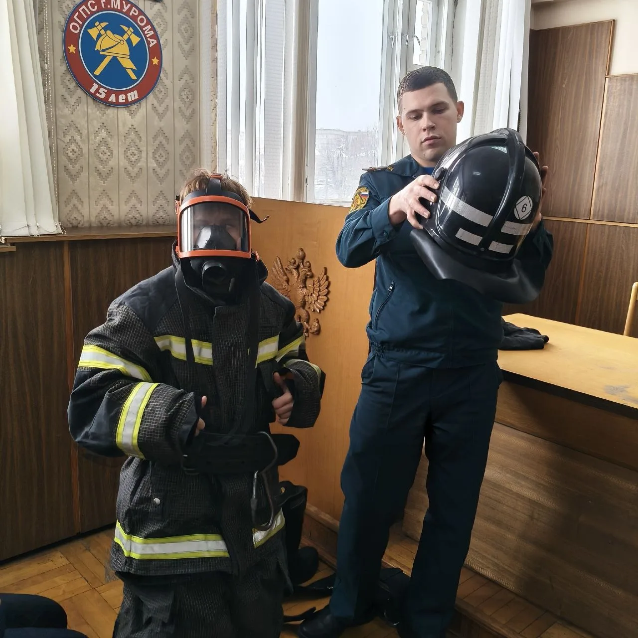 Сотрудники пожарной части провели практическое занятие, показав ребятам, как правильно надевать защитные костюмы. Встреча была насыщенной и познавательной, ребята активно задавали вопросы специалистам.