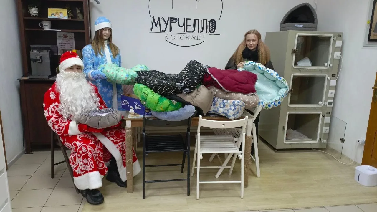 И вот наступил тот долгожданный момент! Накануне праздника новогоднюю радость пушистым хвостатикам - питомцам котокафе "Мурочелло" принесли Дедушка Мороз и Снегурочка. Котики были невероятно рады новым уютным местечкам для отдыха и игр.
