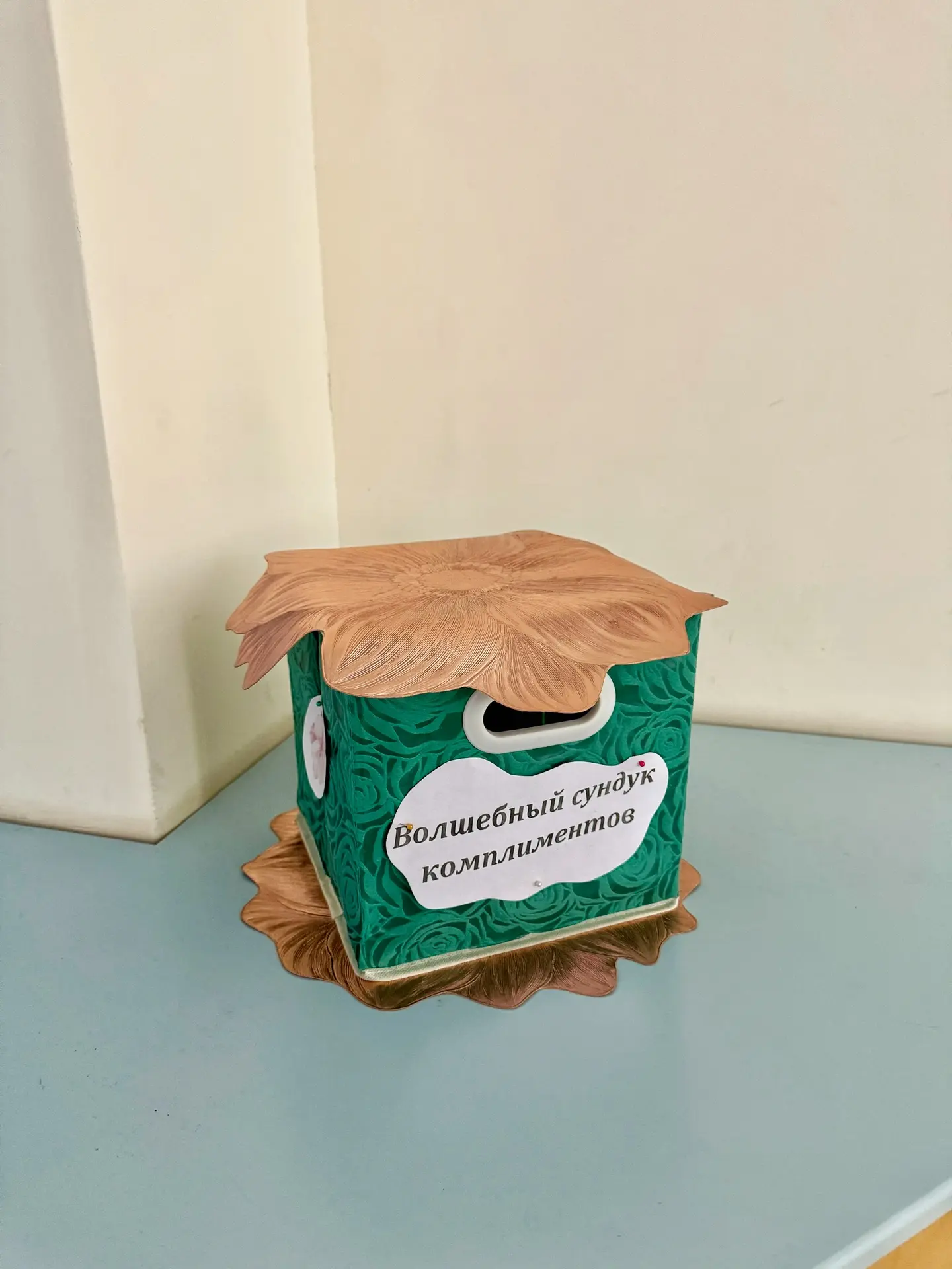 Это специальный ящик, куда каждый ученик сможет положить листочки с комплиментами, теплыми словами благодарности и искренними пожеланиями своим любимым учителям.