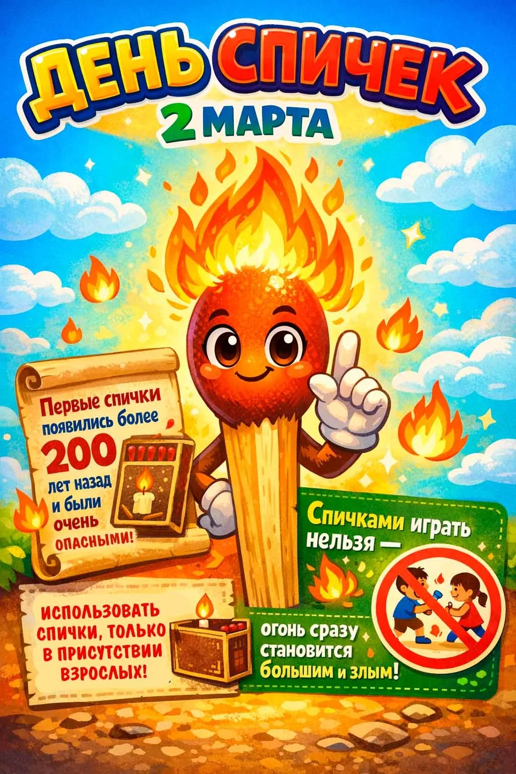 🔹 Пожарная безопасность. Учите детей не играть с огнём, зажигалками и спичками.