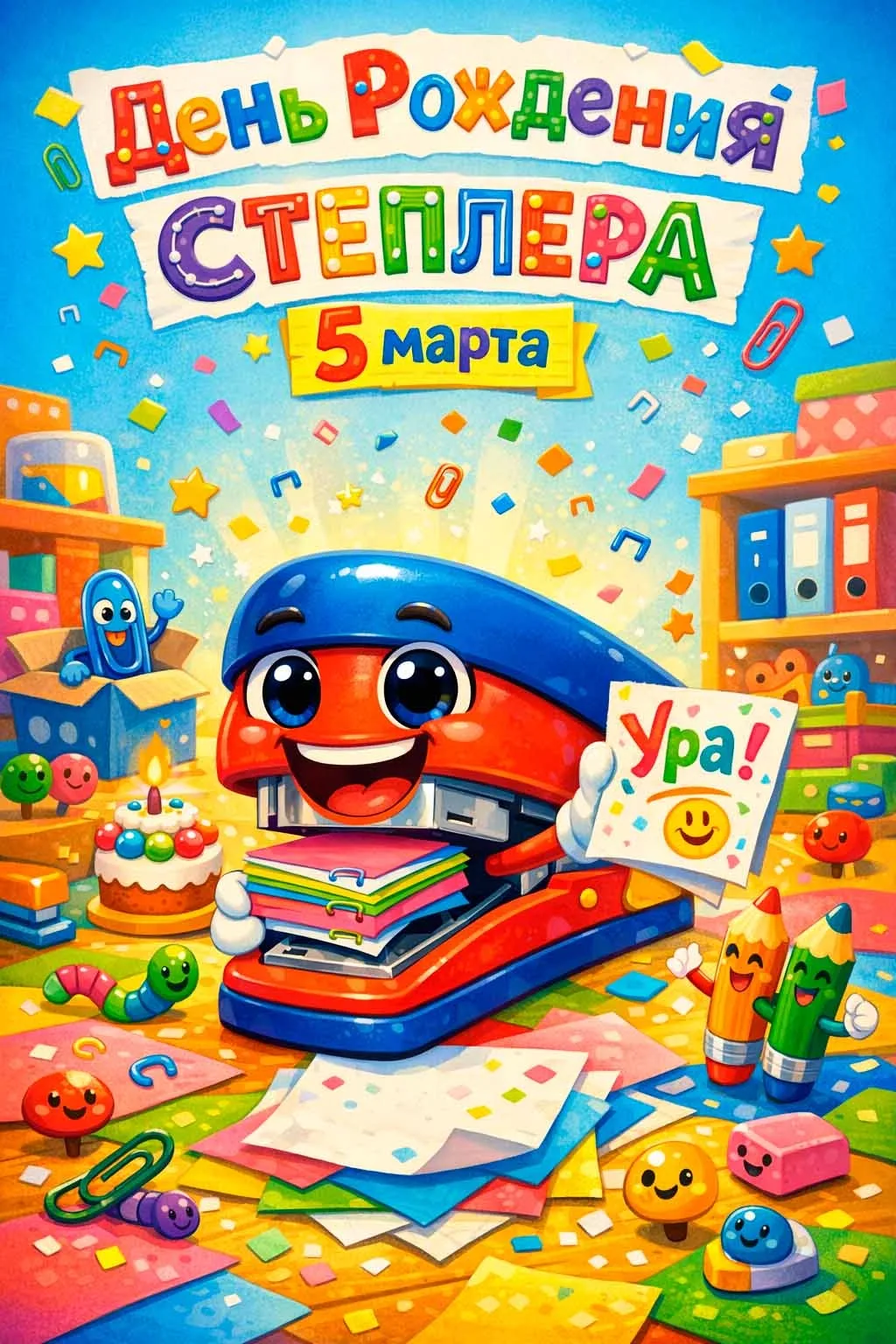 5 марта ежегодно отмечают День рождения степлера, предназначение которого – скрепление листов бумаги. В 1866 году некто Джордж Макгилл изобрёл прообраз современной скобы, а через год – 5 марта 1867 года запатентовал и специальный пресс, позволяющий скреплять отдельные листы бумаги. Сегодня без степлера не может обойтись ни один школьник, студент и офисный работник.