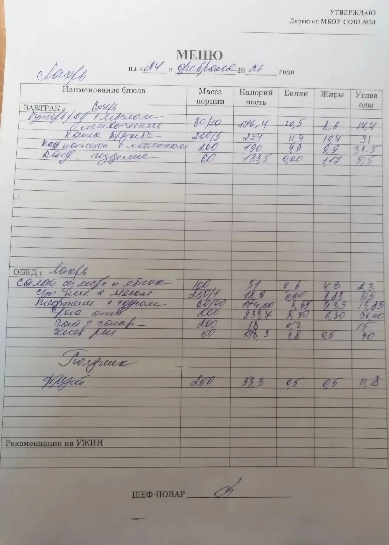 🍽 МЕНЮ ДНЯ.ЛАГЕРЬ.