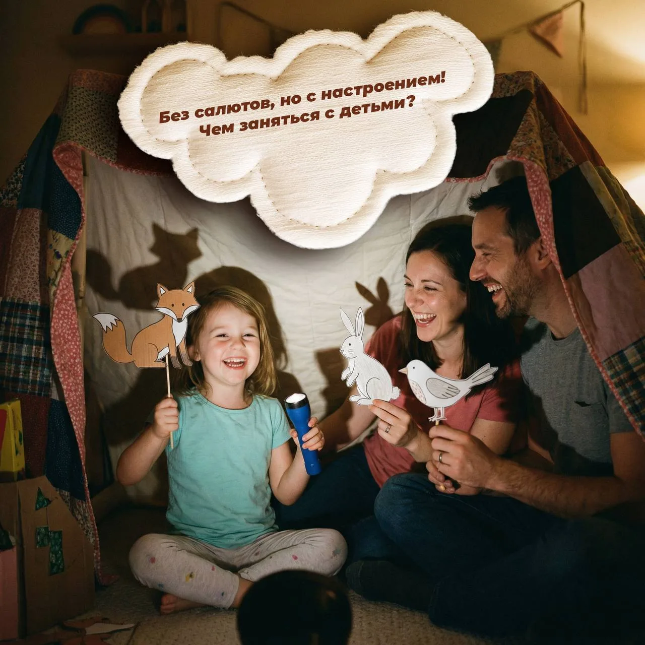 🔦 Театр теней. Обычный фонарик, белая простыня и руки папы — и вот уже на стене оживает сказка.