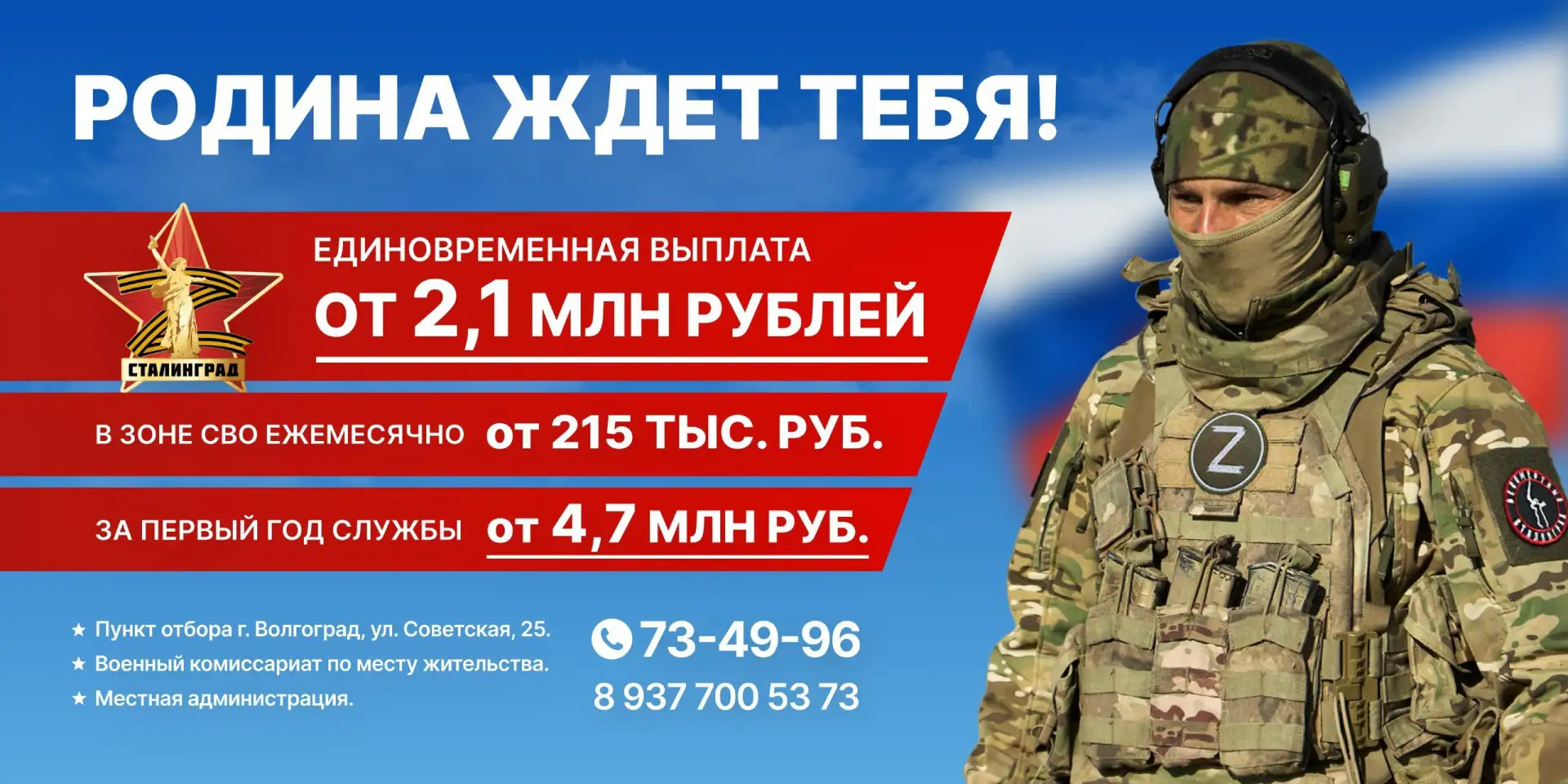 Сразу после подписания контракта ты получишь 2,1 млн рублей, а ежемесячное вознаграждение в зоне СВО — еще от 215 тысяч рублей.