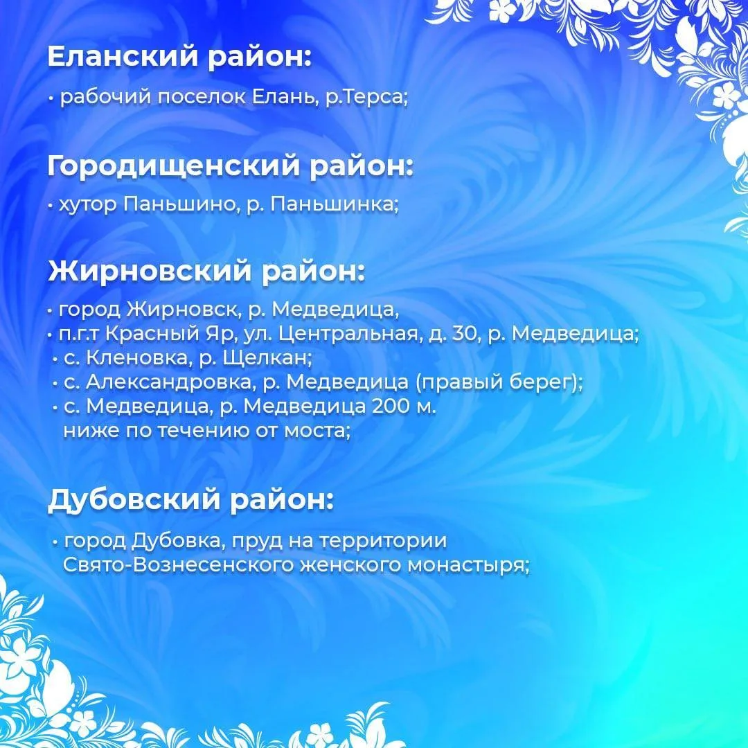 Перечень безопасных оборудованных мест Крещенских купаний нашего региона – в карточках👉🏻