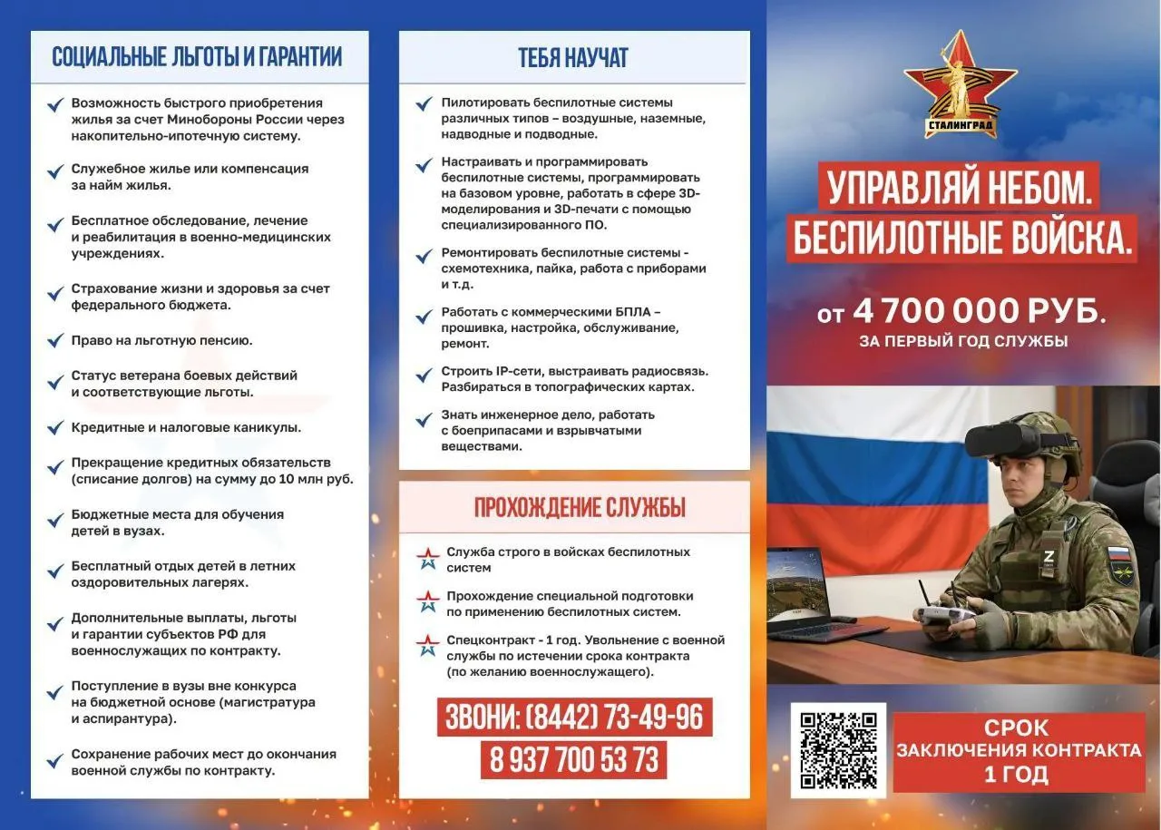 Если вы готовы к контрактной службе в современных подразделениях, применяющих передовые беспилотные технологии, – это ваш шанс!