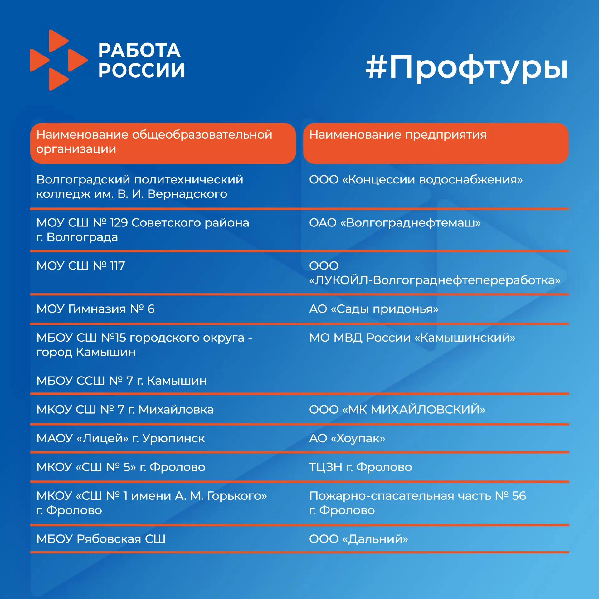 🏭 Участников принимают ведущие предприятия и организации региона: НИИ гидросвязи АО «Штиль», Волгоградский керамический завод, филиалы ГУ МВД России по Волгоградской области и ГУ МЧС России по Волгоградской области, ОАО Газпром Ольховское ЛПУМГ и другие.