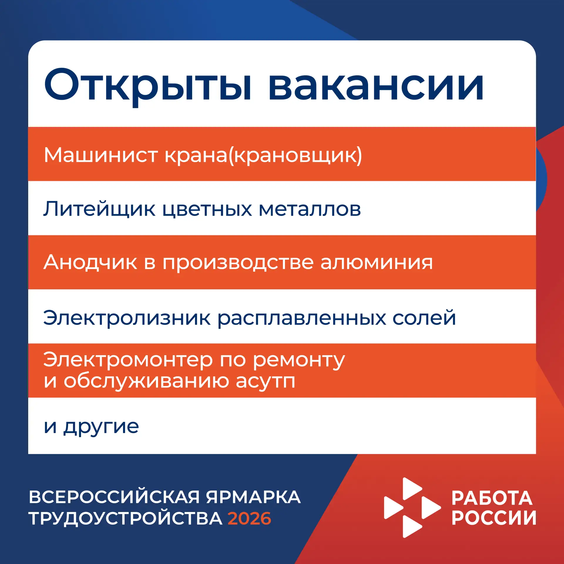 🚀 Продолжаем знакомить вас с работодателями — участниками регионального этапа Всероссийской ярмарки трудоустройства «Работа России. Время возможностей» — 2026!