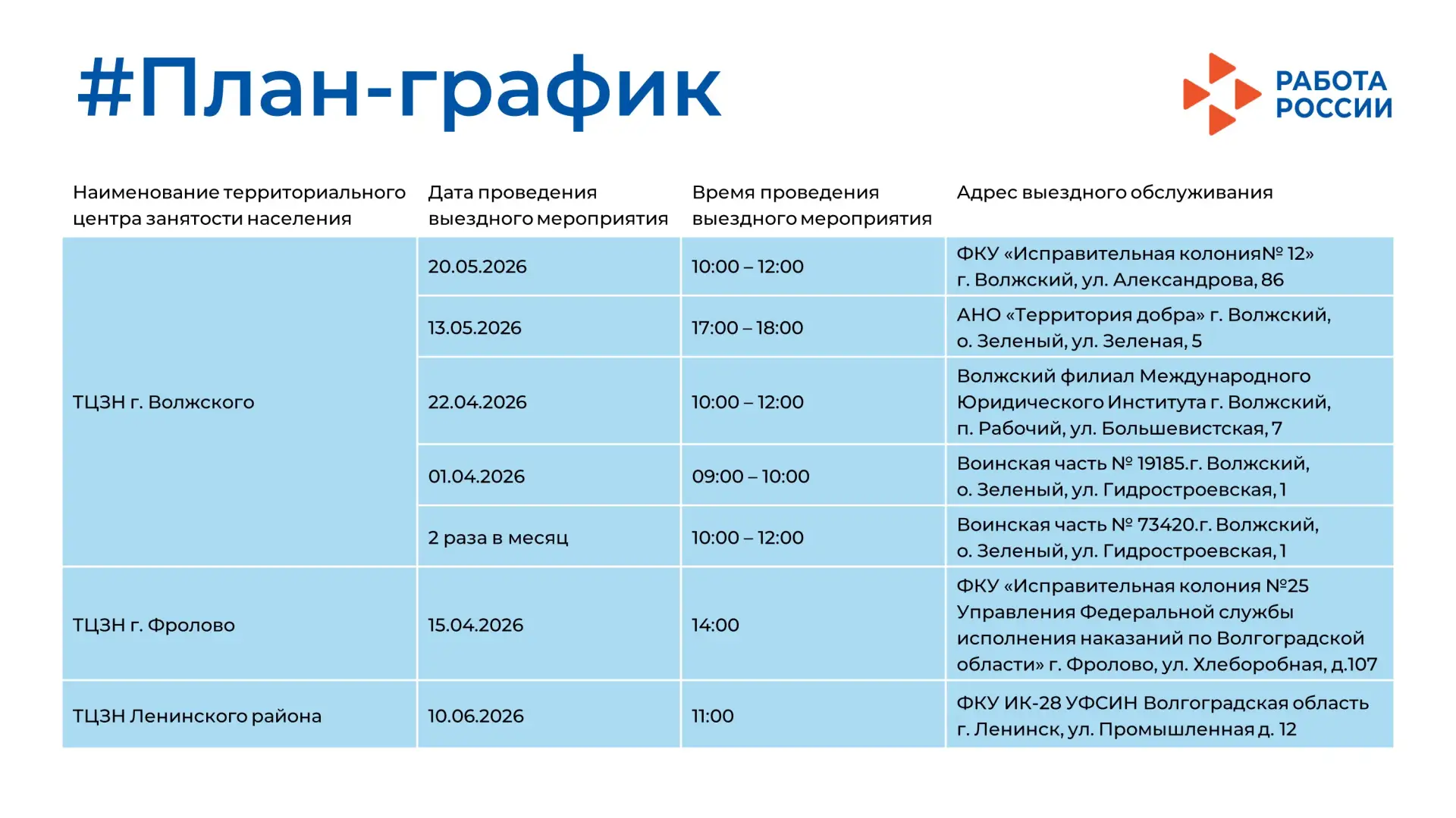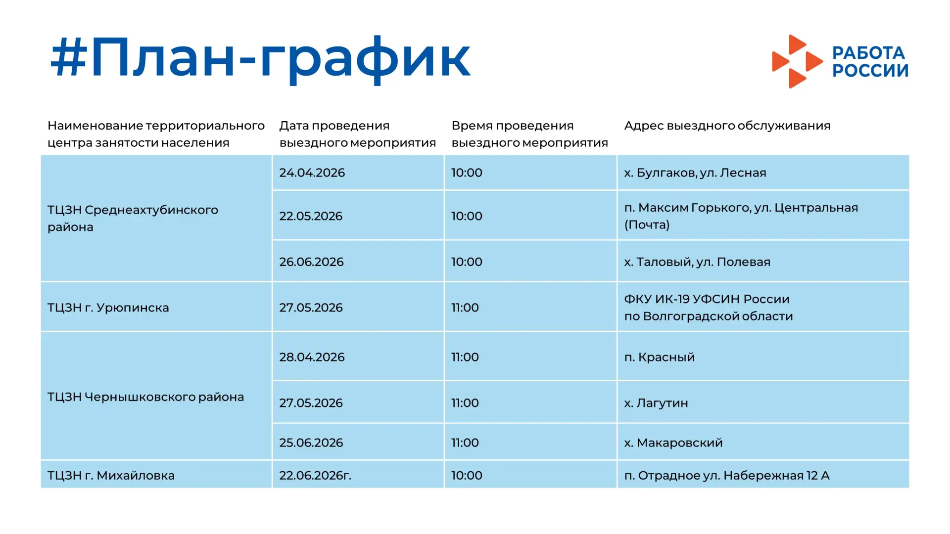 🤝 Ждём вас уже сегодня в Кадровых центрах Волгоградской области с 10:00 до 14:00, ознакомиться с программой мероприятия в г. Волгограде вы можете в карточке поста.