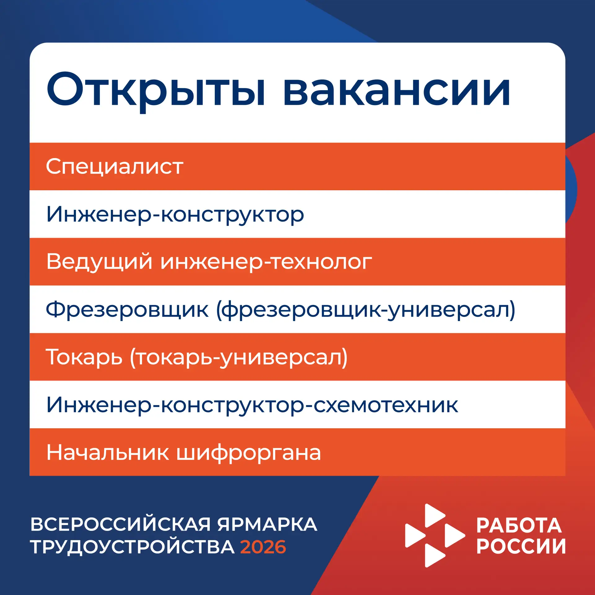 Всероссийская ярмарка трудоустройства «Работа России. Время возможностей» проходит уже 4-й год и объединяет соискателей и работодателей по всей стране 🔍