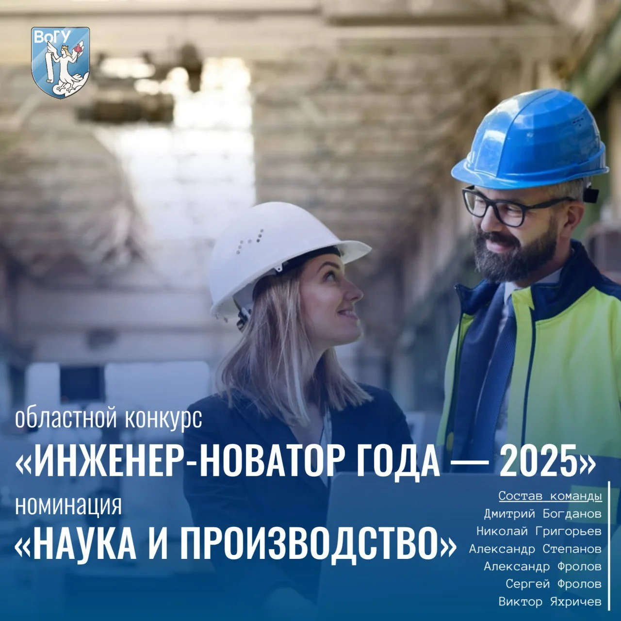 Коллектив Вологодского государственного университета стал победителем областного конкурса «Инженер‑новатор года — 2025» в номинации «Наука в производство».