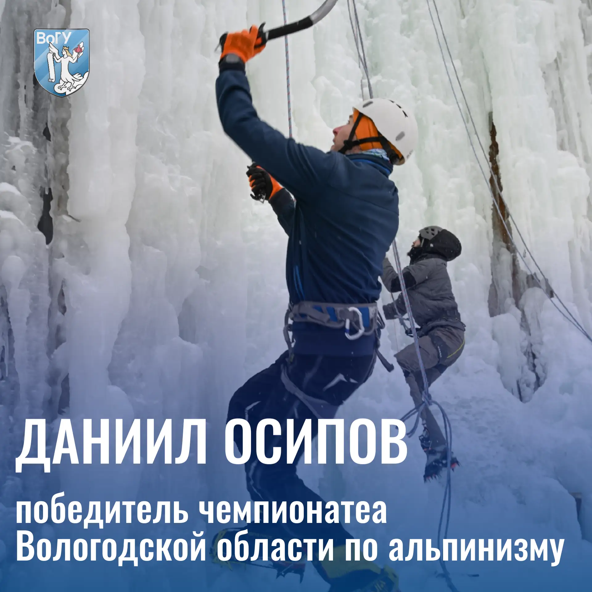 Ледяное противостояние развернулось на чемпионате Вологодской области по альпинизму. В дисциплине «ледолазание» наш преподаватель продемонстрировал невероятное мастерство в преодолении сложнейших ледовых трасс.