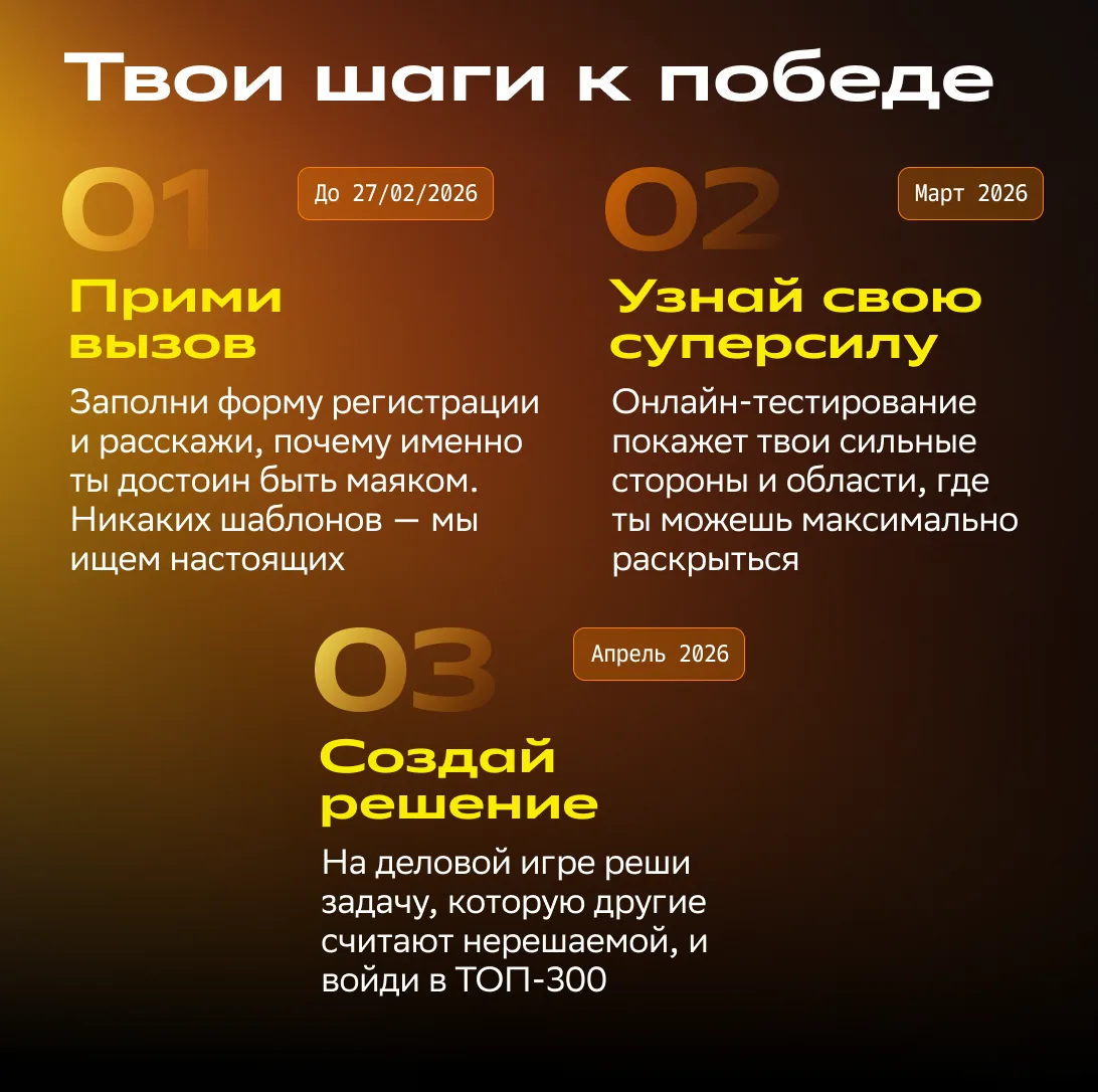 Если ты из тех, кто не ждёт идеального момента, а создаёт его сам — подавай заявку до 27 февраля.