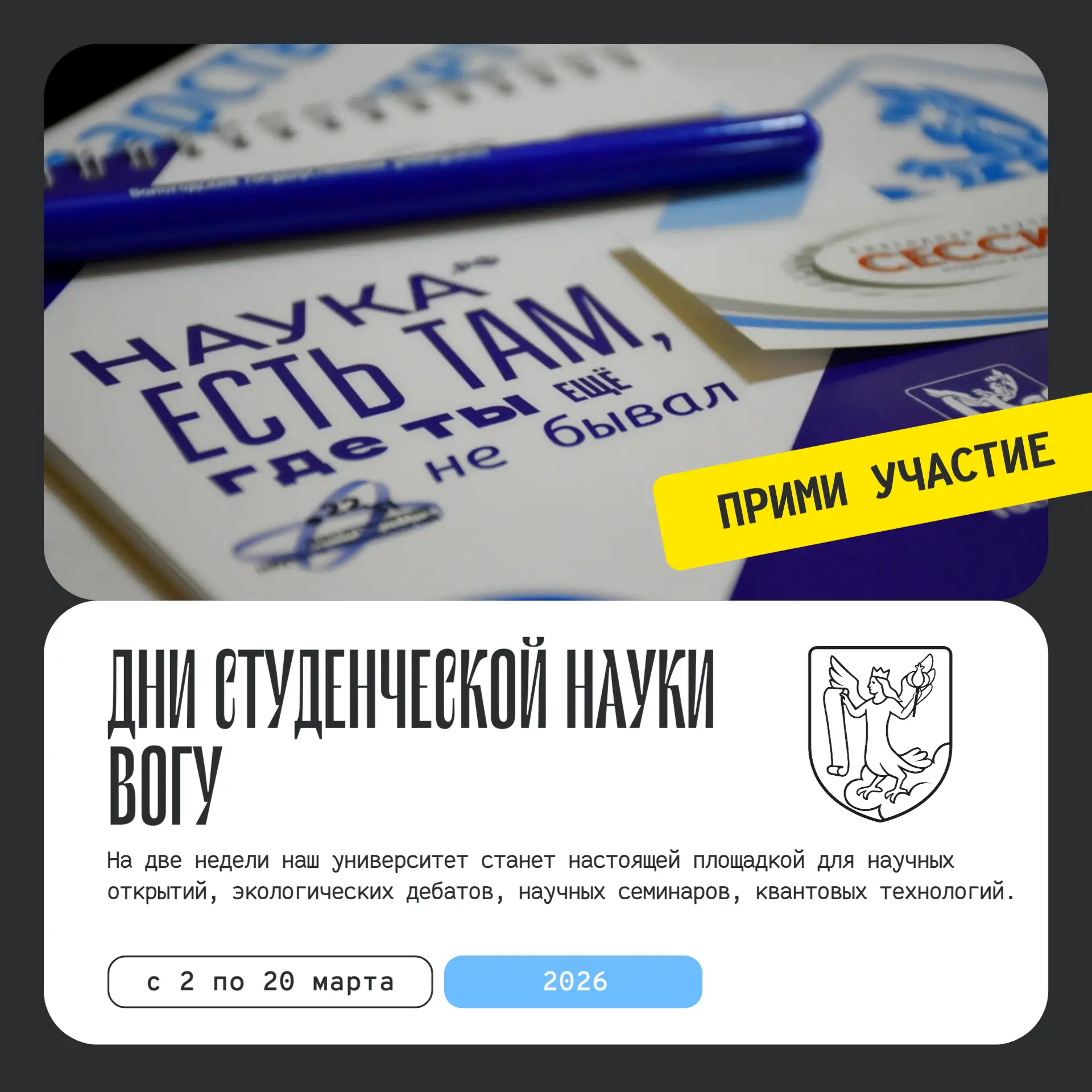 📍Подача заявок: запишите видео продолжительностью до 1,5 минут, в котором вы заявляете о своём участии в конкурсе. Выложите ролик на официальной странице института в социальной сети «ВКонтакте» до 10 марта 2026 года включительно, указав официальный хештег Конкурса #ИнститутГода2026.