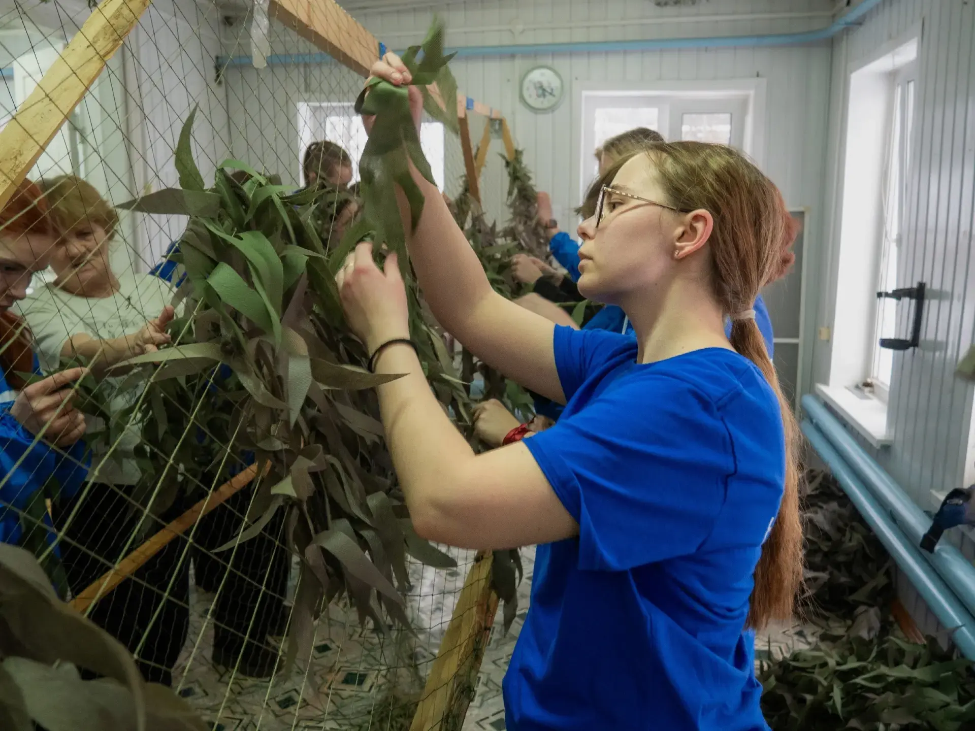 Они расчищали снег, кололи дрова, проводили мастер-классы для школьников, общались с оленями на местной ферме, дарили концерты и спортивные мероприятия местным жителям и даже научились плести маскировочные сети вместе с «серебряными» волонтёрами.
