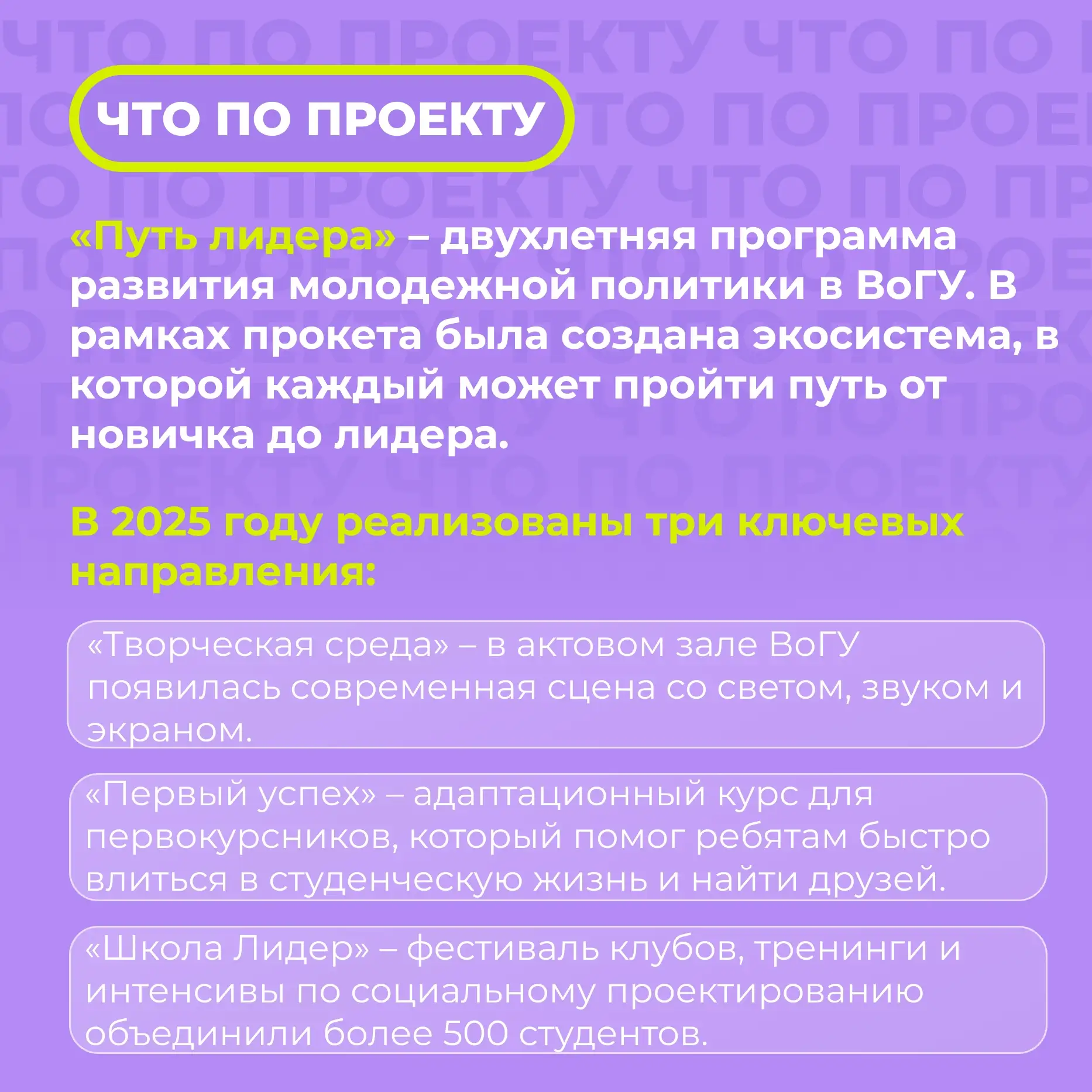 ЧТО ПО ПРОЕКТУ? Так называется рубрика Молодежного грантового офиса Вологодской области, в которой рассказали про историю успеха ВоГУ!
