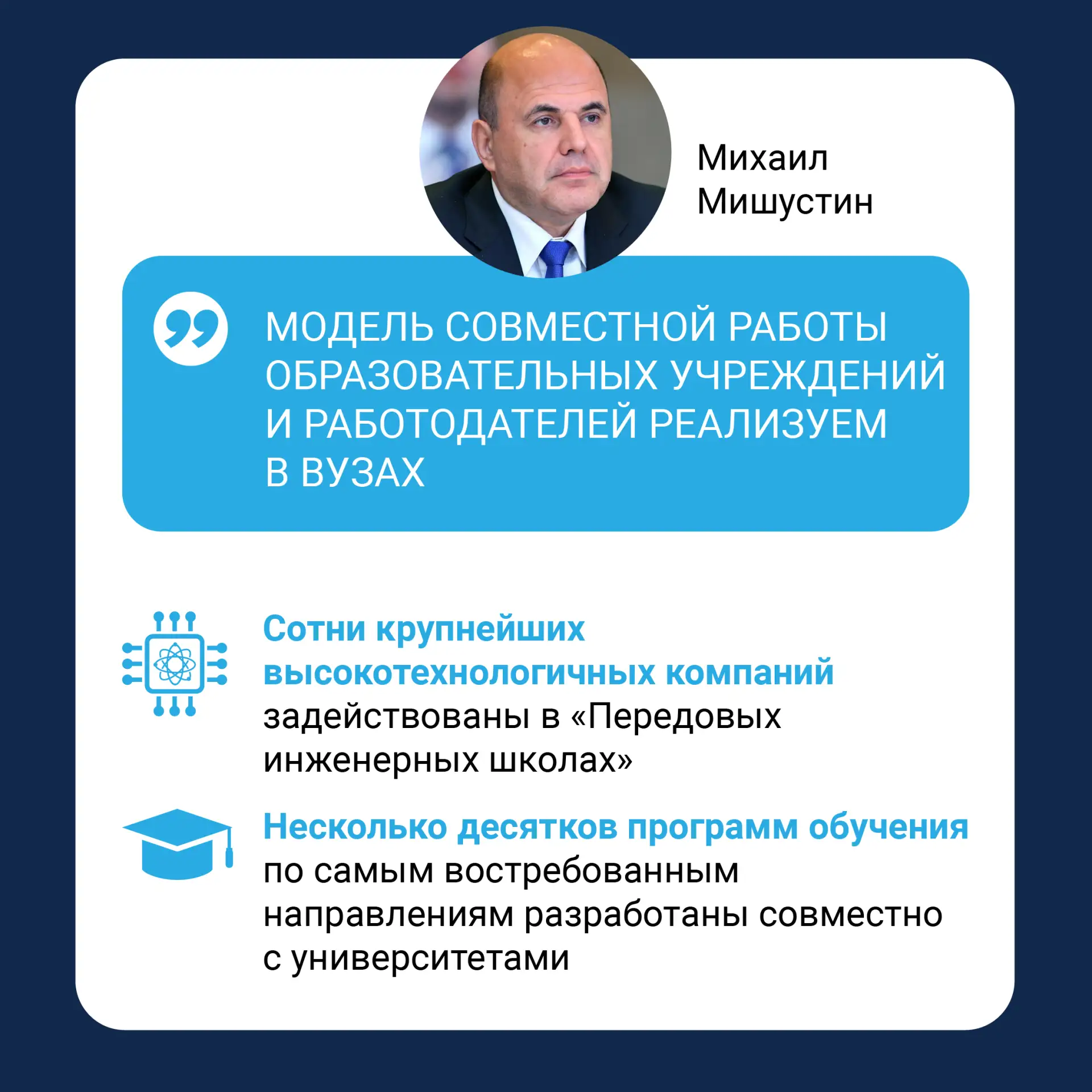 Такое партнёрство соответствует задачам, которые обсуждали сегодня на комиссии Госсовета по спорту. Будем готовить увлеченных футболом специалистов, создадим дополнительные траектории роста в спорте.