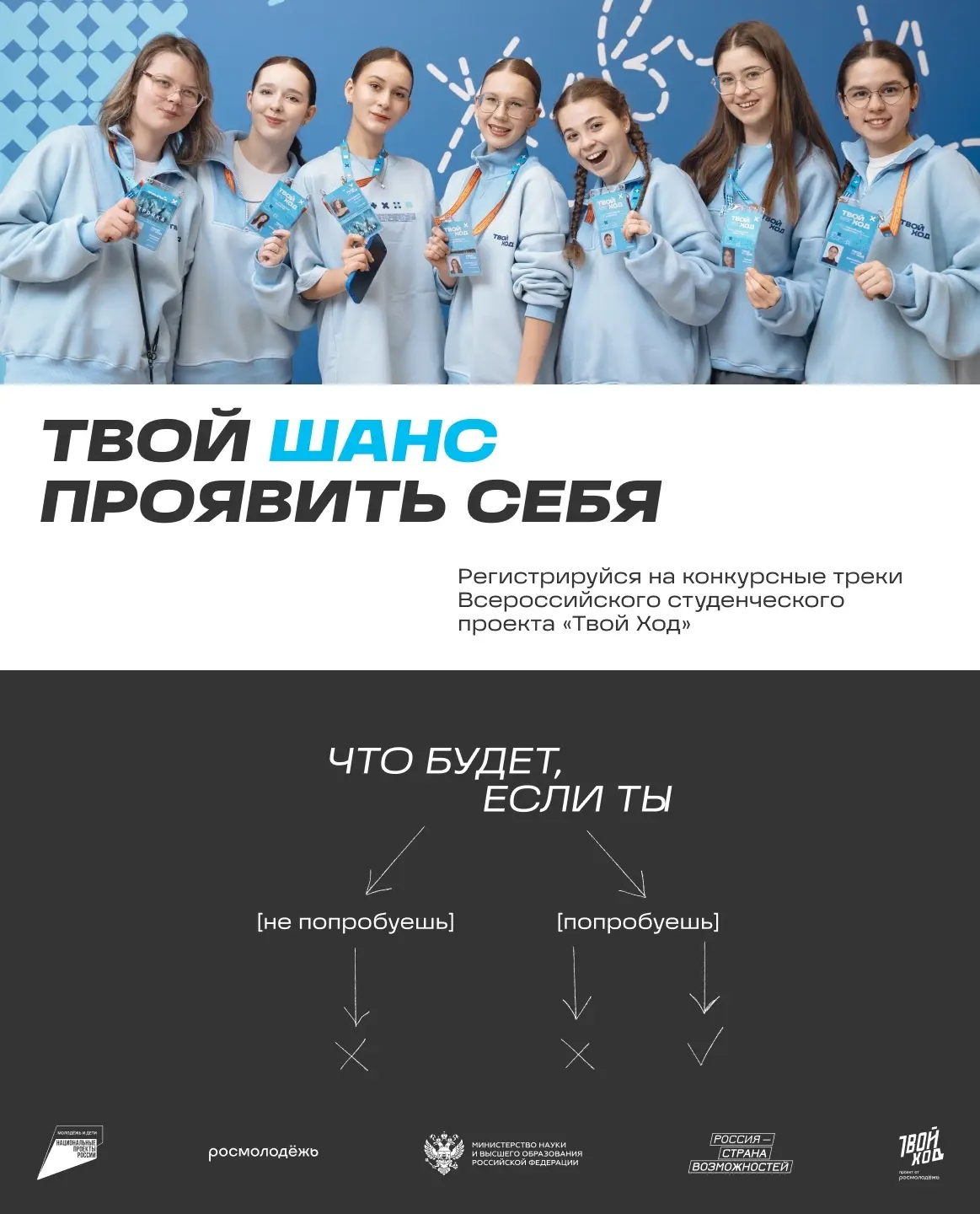 Весна только началась, а Всероссийский студенческий проект «Твой Ход» уже путешествует по всей России, и у тебя есть возможность познакомиться с единым студенческим сообществом в нашем вузе!