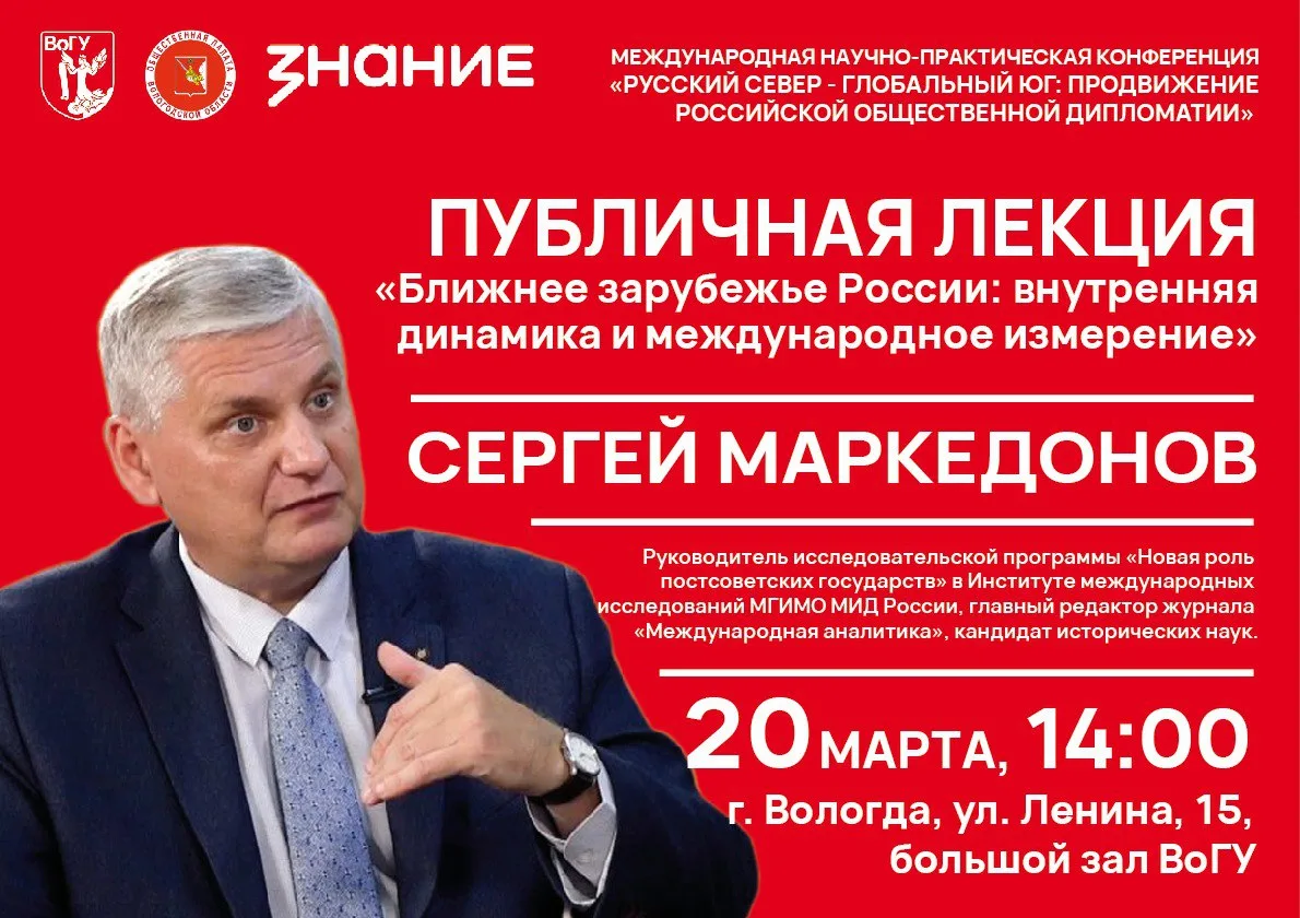 19-21 марта в Вологодском государственном университете при поддержке Правительства Вологодской области пройдет международная научно-практическая конференция "Русский Север - Глобальный Юг: продвижение российской общественной дипломатии"