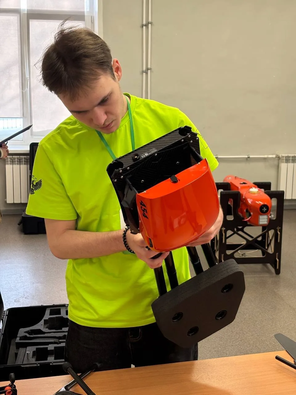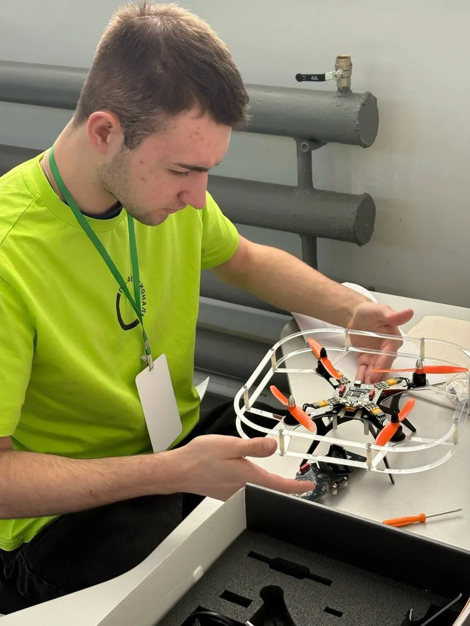 🔘Егор Снежуров из Вологодского технического колледжа — компетенция «Ремонт беспилотных летательных аппаратов»;