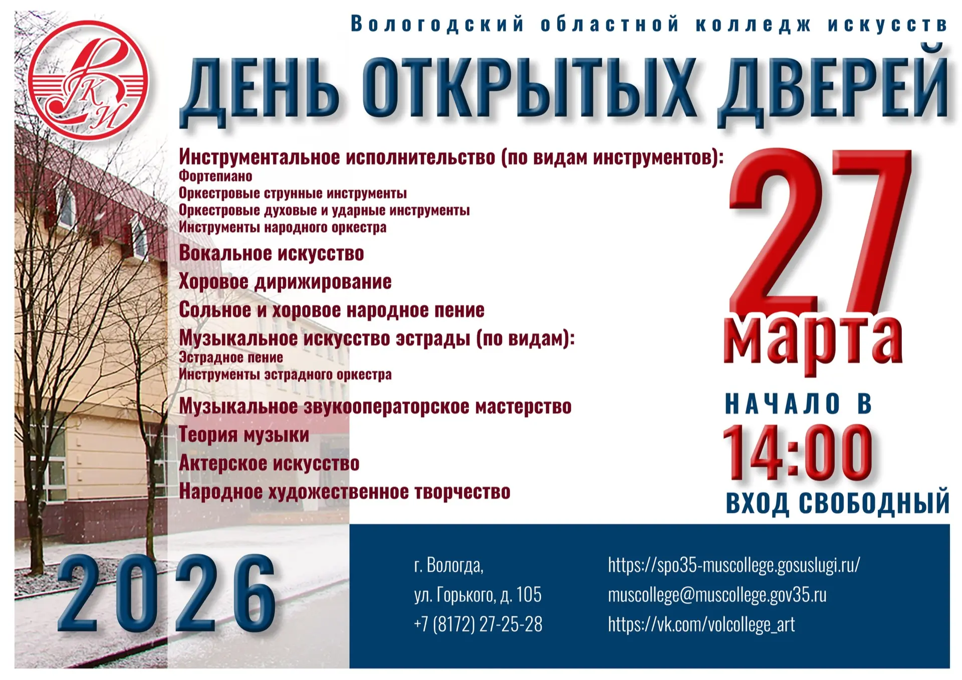 Вологодский областной колледж искусств приглашает на День открытых дверей.