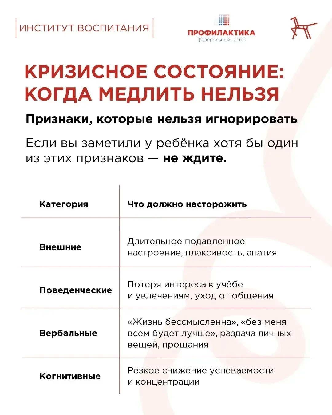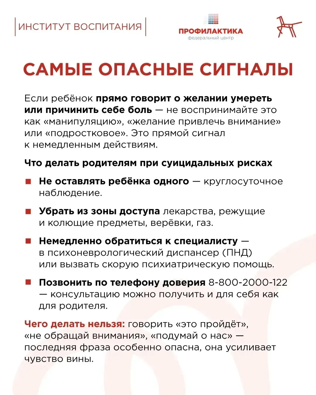 Как распознать эти сигналы и что делать? Отвечаем в карточках, которые подготовили совместно со специалистами федерального центра «Профилактика».