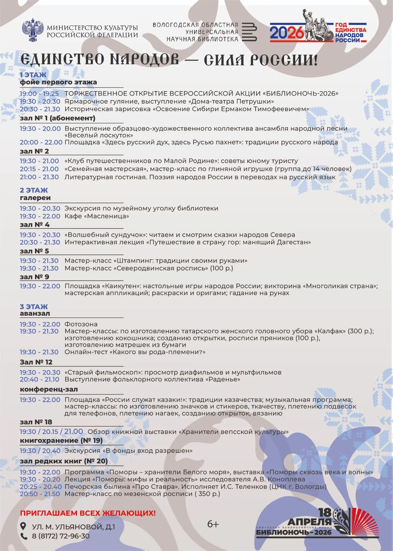 Весна уже стучится в дверь — этноклуб встретит её «Весенними закличками». Директор ИПП Татьяна Поярова раскроет все карты про институт. Вы узнаете, как на самом деле живут студенты. А психологи устроят мастер‑класс, после которого вы скажете: «Вау, так вот как это работает!»