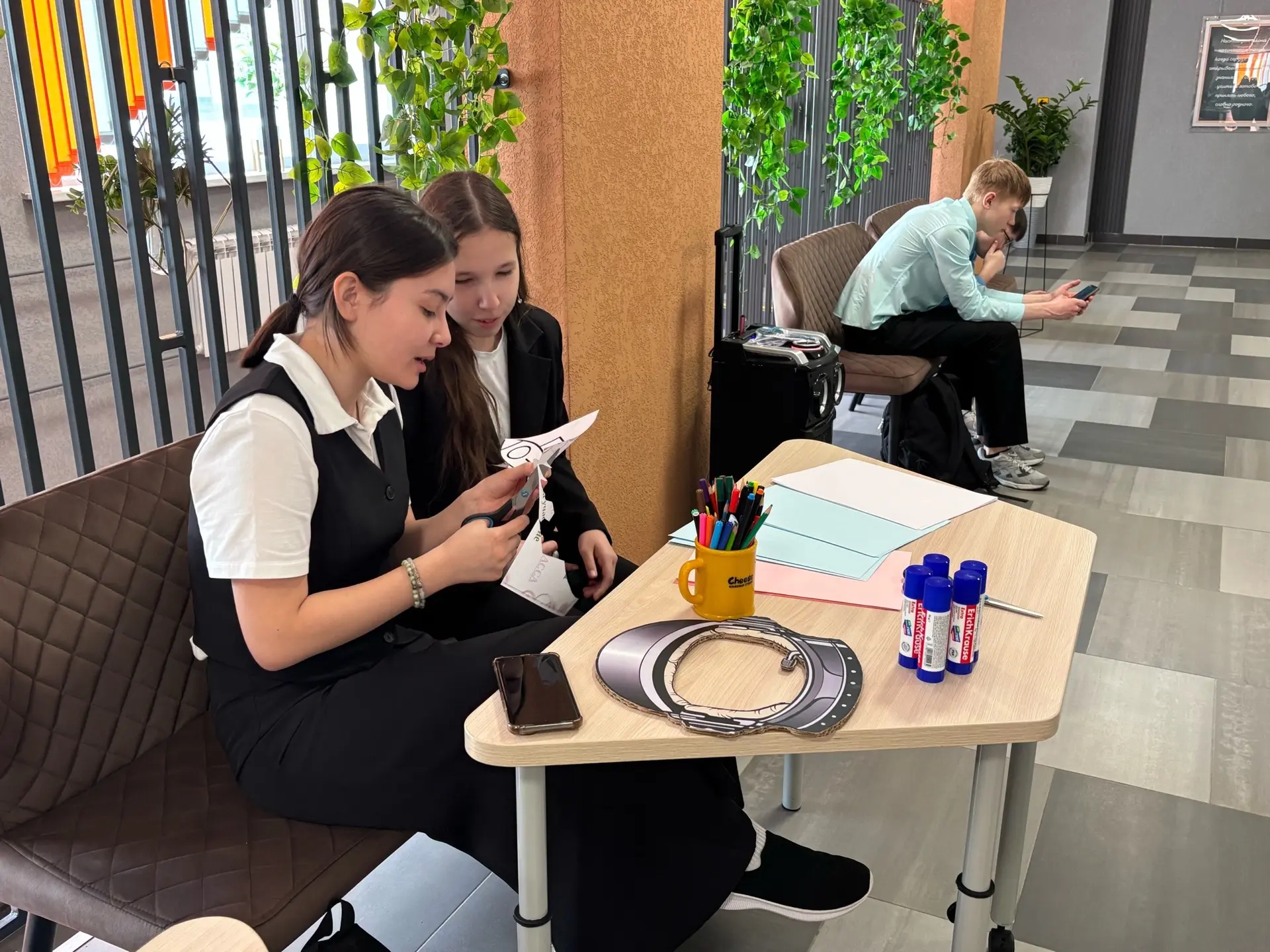💡По инициативе наших советников по воспитанию Самаровой Оксаны Сергеевны и Архиповой Кристины Олеговны на каждой перемене ребята рисовали "Космическую газету", конструировали ракеты, делали аппликации, разгадывали кроссворды, фотографировались в скафандрах, а еще показали свои танцы в космической невесомости!