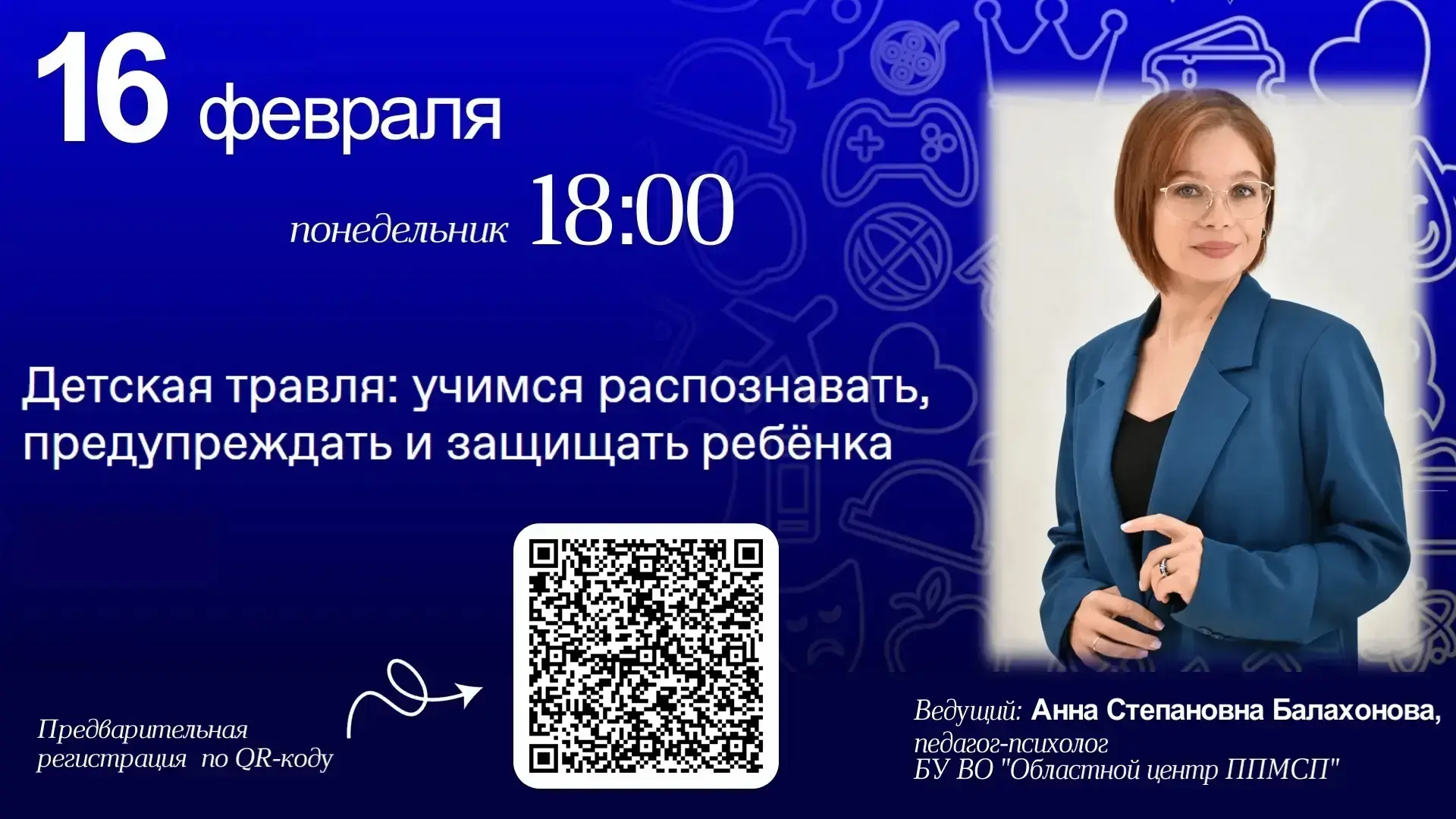 16 февраля 2026 года в 18:00 состоится онлайн-лекция «Детская травля: учимся распознавать, предупреждать и защищать ребёнка».