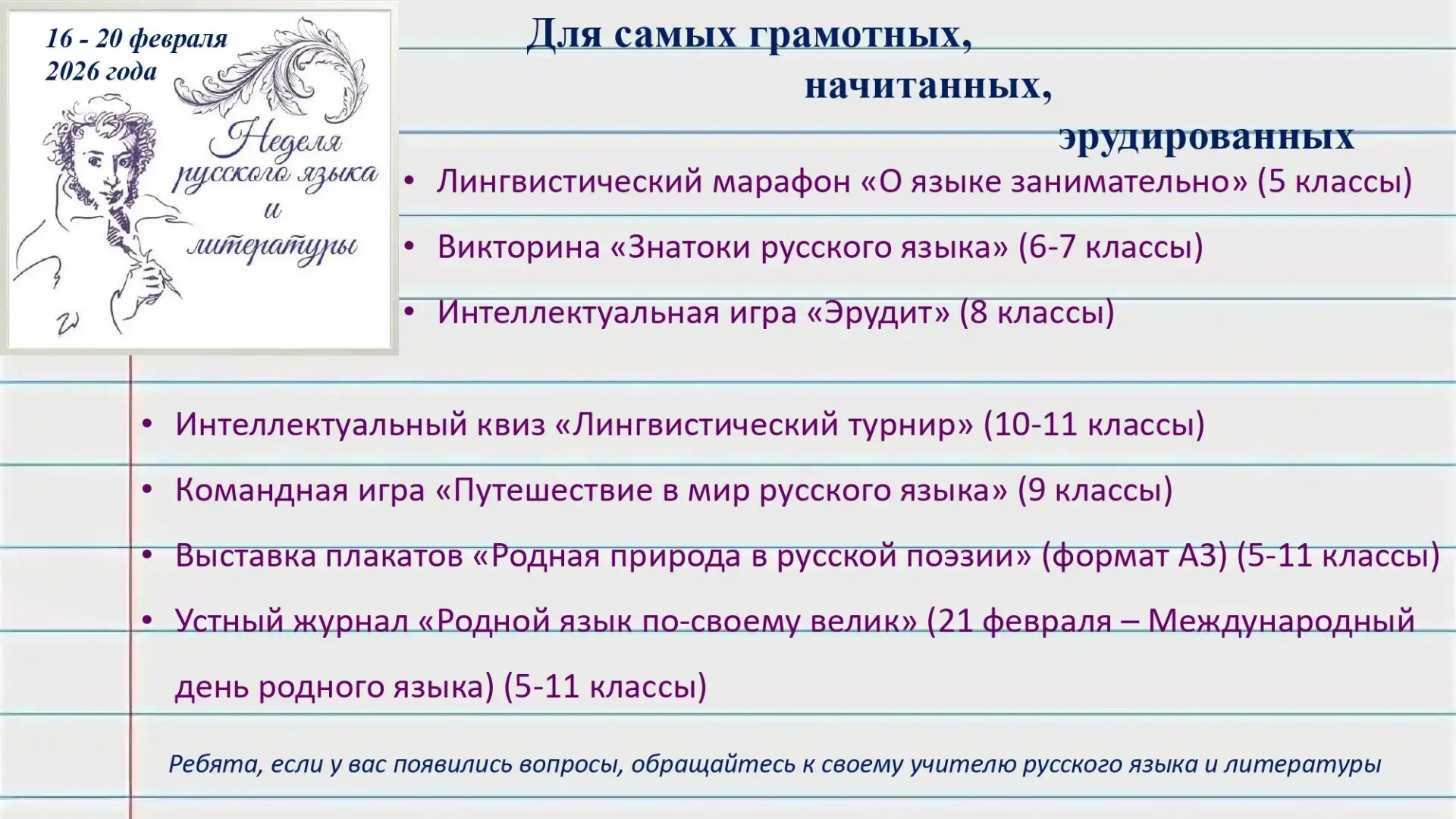 Это отличная возможность погрузиться в мир русской словесности, расширить кругозор и проявить себя.