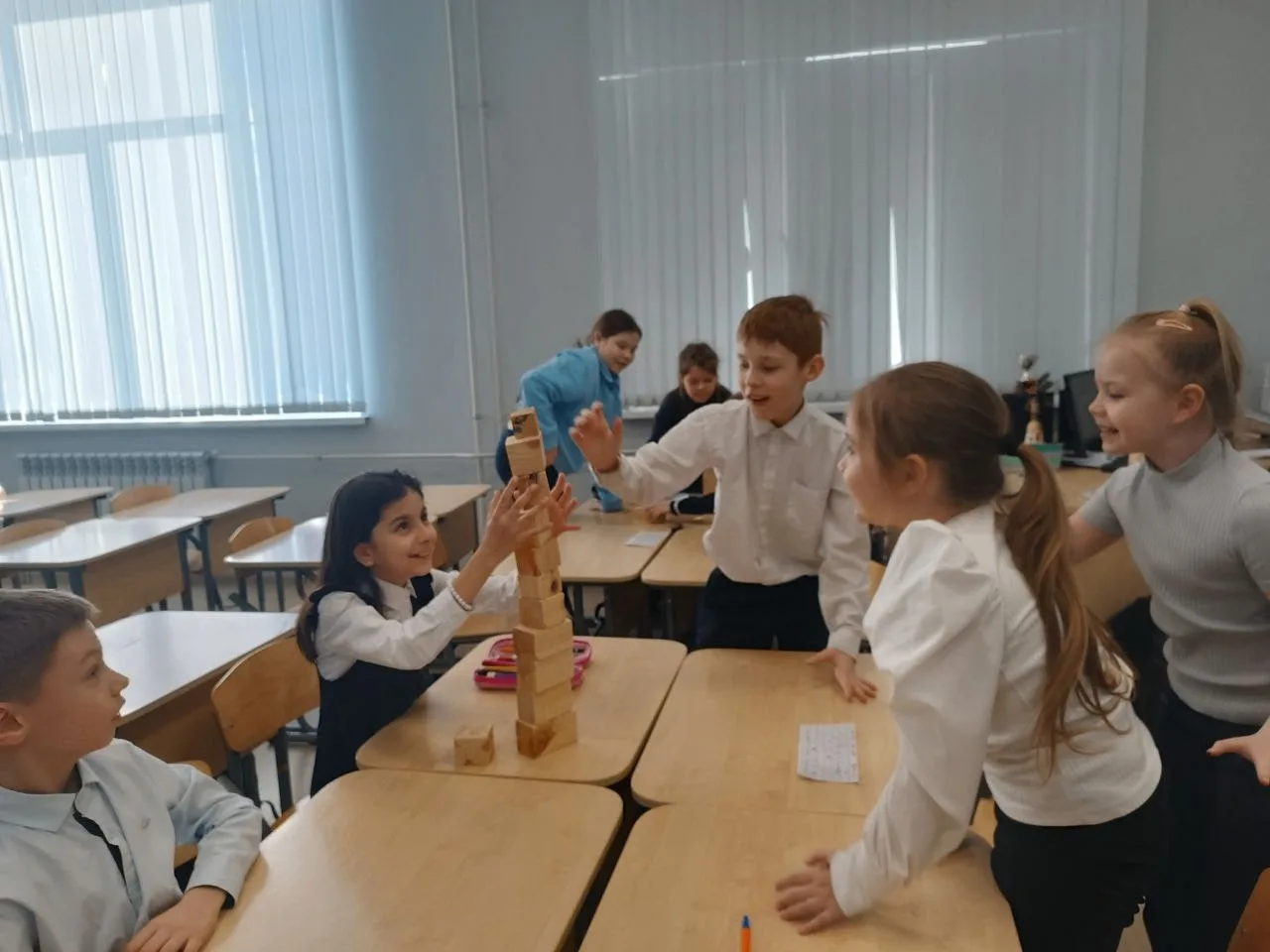 В завершение соревнования командам пришлось проявить смекалку и координацию движений, построив башни из полученных игровых кубиков. Победила команда, чья башня оказалась самой высокой и устойчивой.