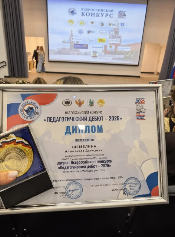 Учитель истории и обществознания "Центра образования №42" Александра Денисовна Шемелина стала лауреатом Всероссийского конкурса "Педагогический дебют!.