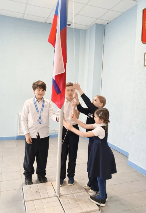 Утро понедельника 13 апреля для 1-11 классов традиционно началось с линейки, на которой обучающиеся исполнили Гимн Российской Федерации и подняли флаг нашей страны.