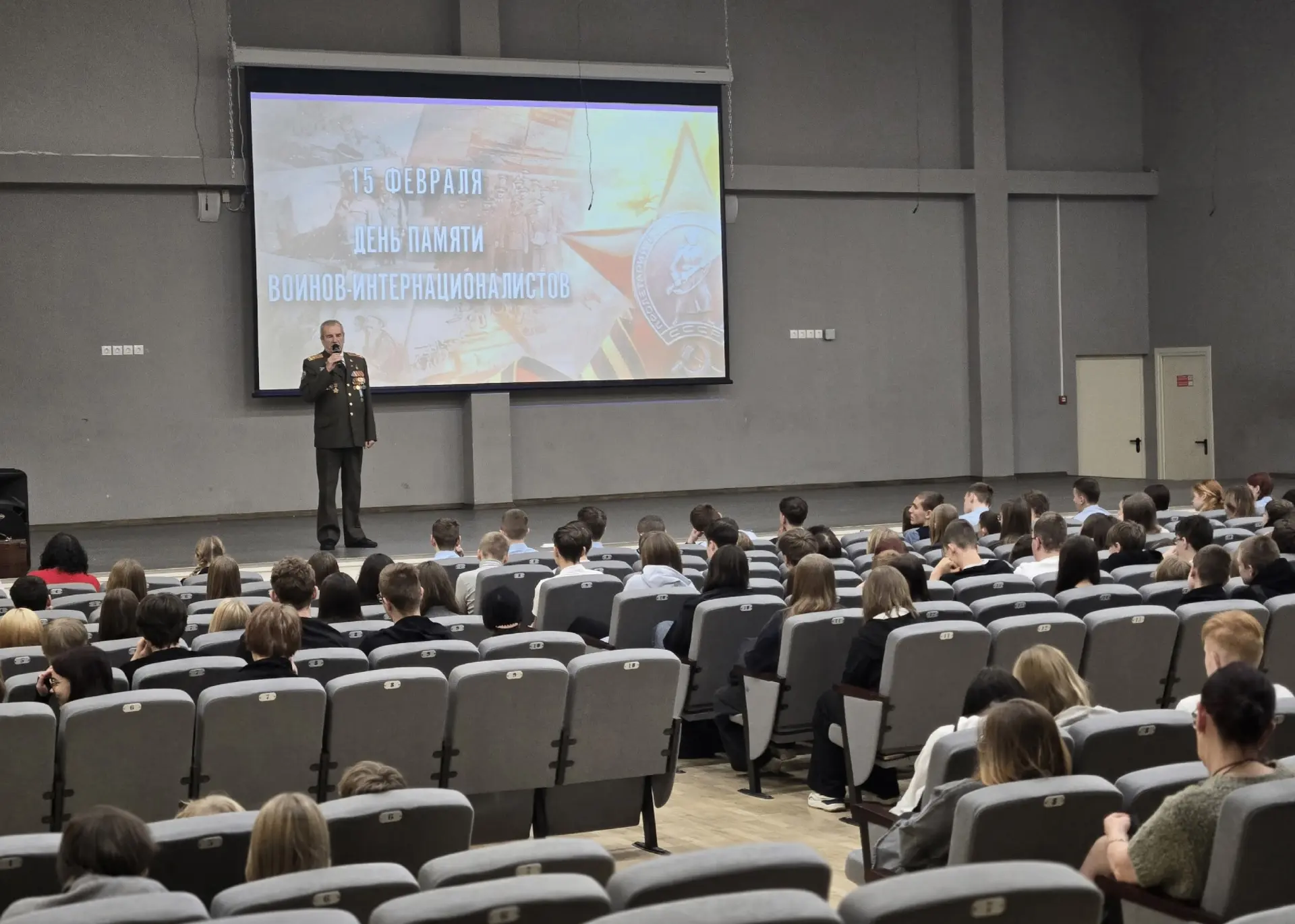 Анатолий Алексеевич рассказал обучающимся историю происхождения праздника День памяти о россиянах, исполнявших служебный долг за пределами отечества, а также познакомил с хроникой событий в Афганистане.
