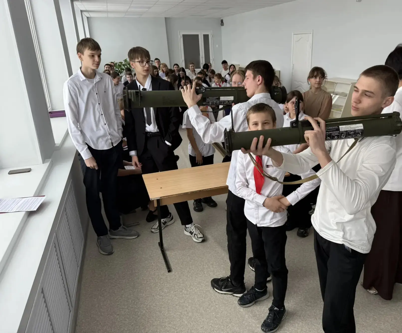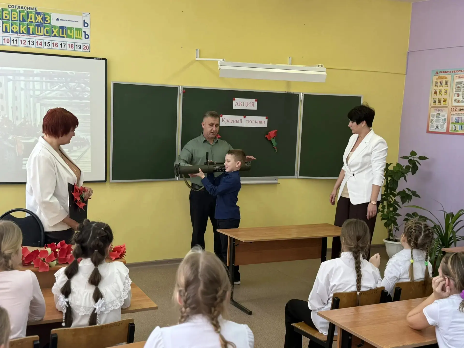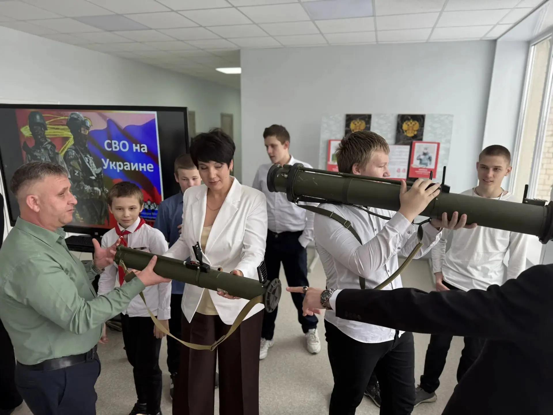 На мероприятии присутствовал почётный гость - глава Подгоренского сельского поселения, волонтёр СВО, Разборский А.С., который рассказал ребятам о своей волонтёрской деятельности и подарил в качестве экспоната в школьный Зал боевой славы РШГ (без боевого заряда), привезённый им из зоны СВО.