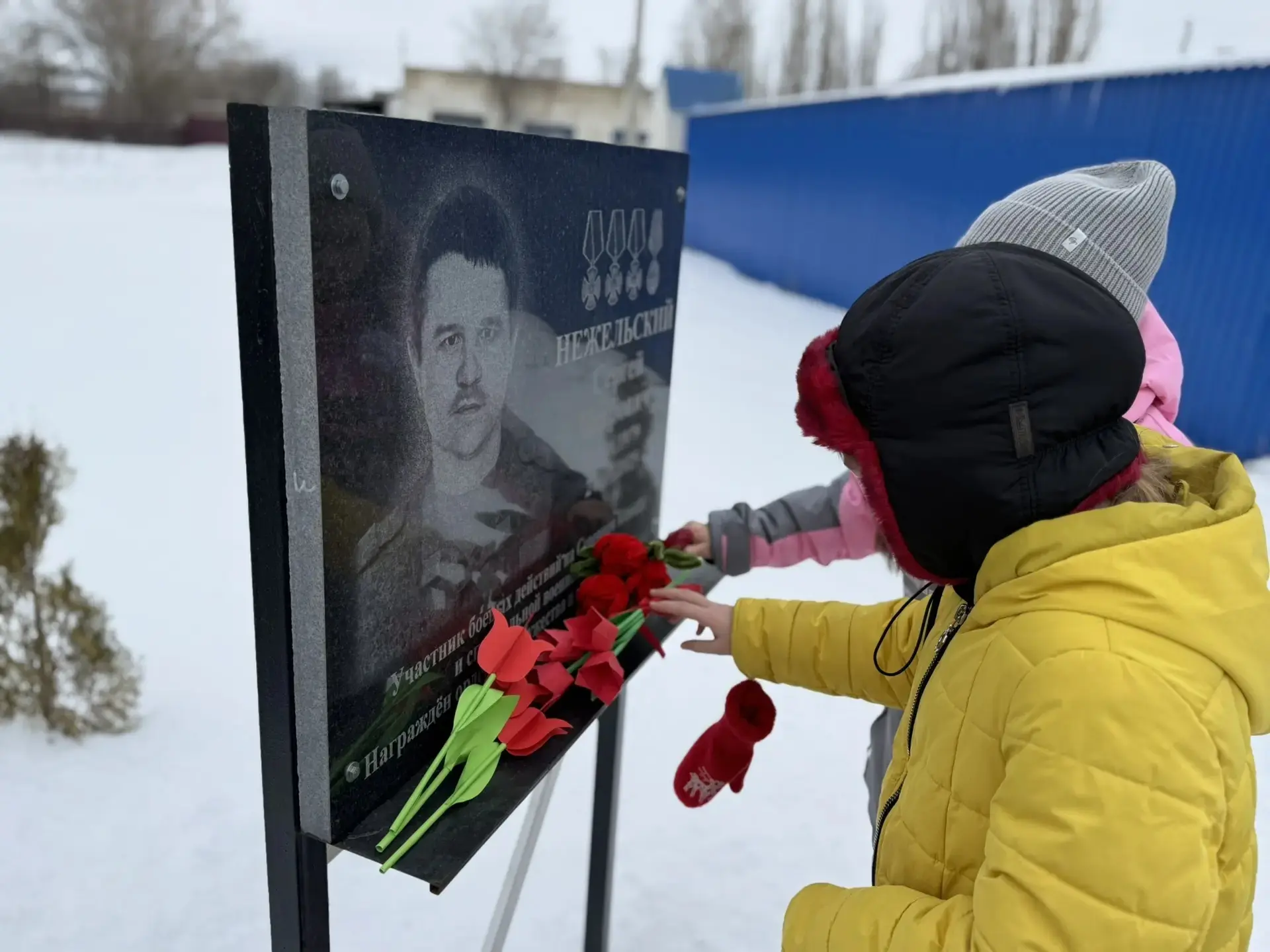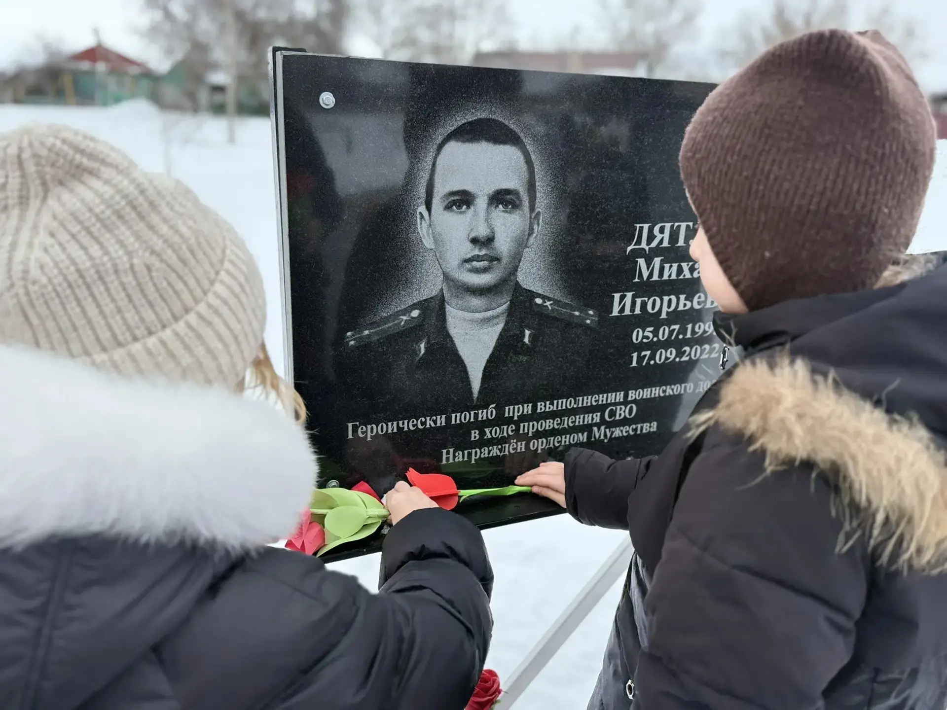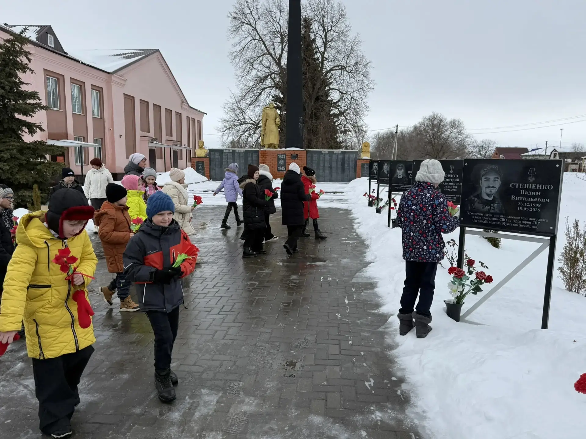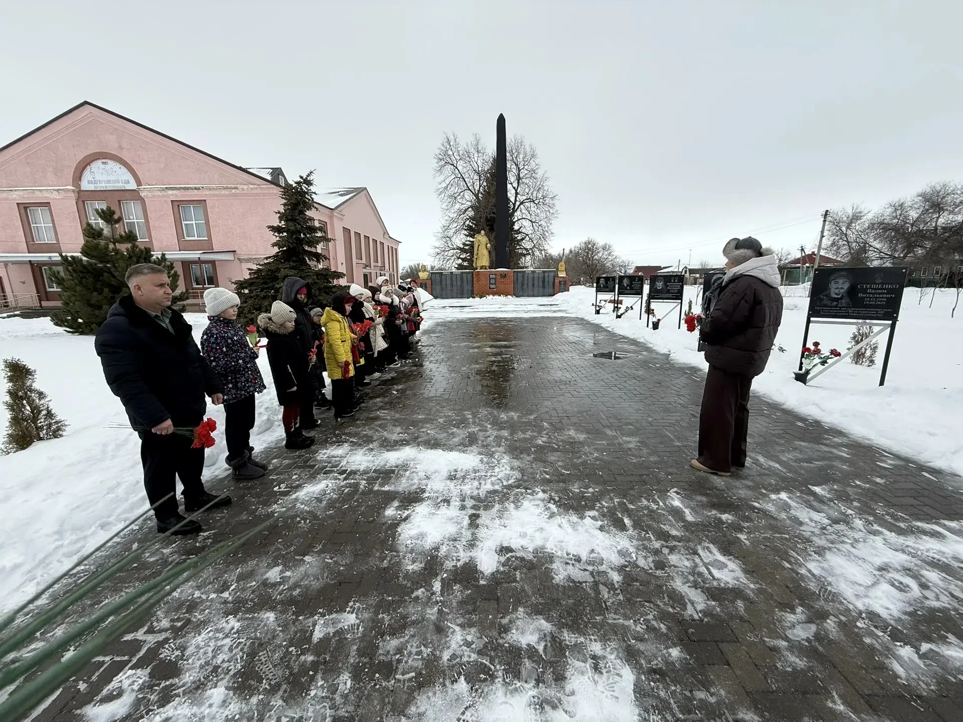 В завершении Урока мужества, на котором присутствовал глава Подгоренского сельского поселения, волонтер СВО, Разборский А.С., ребята, педагоги и почётный гость возложили цветы, изготовленные собственными руками, к мемориальным доскам погибших участников СВО.
