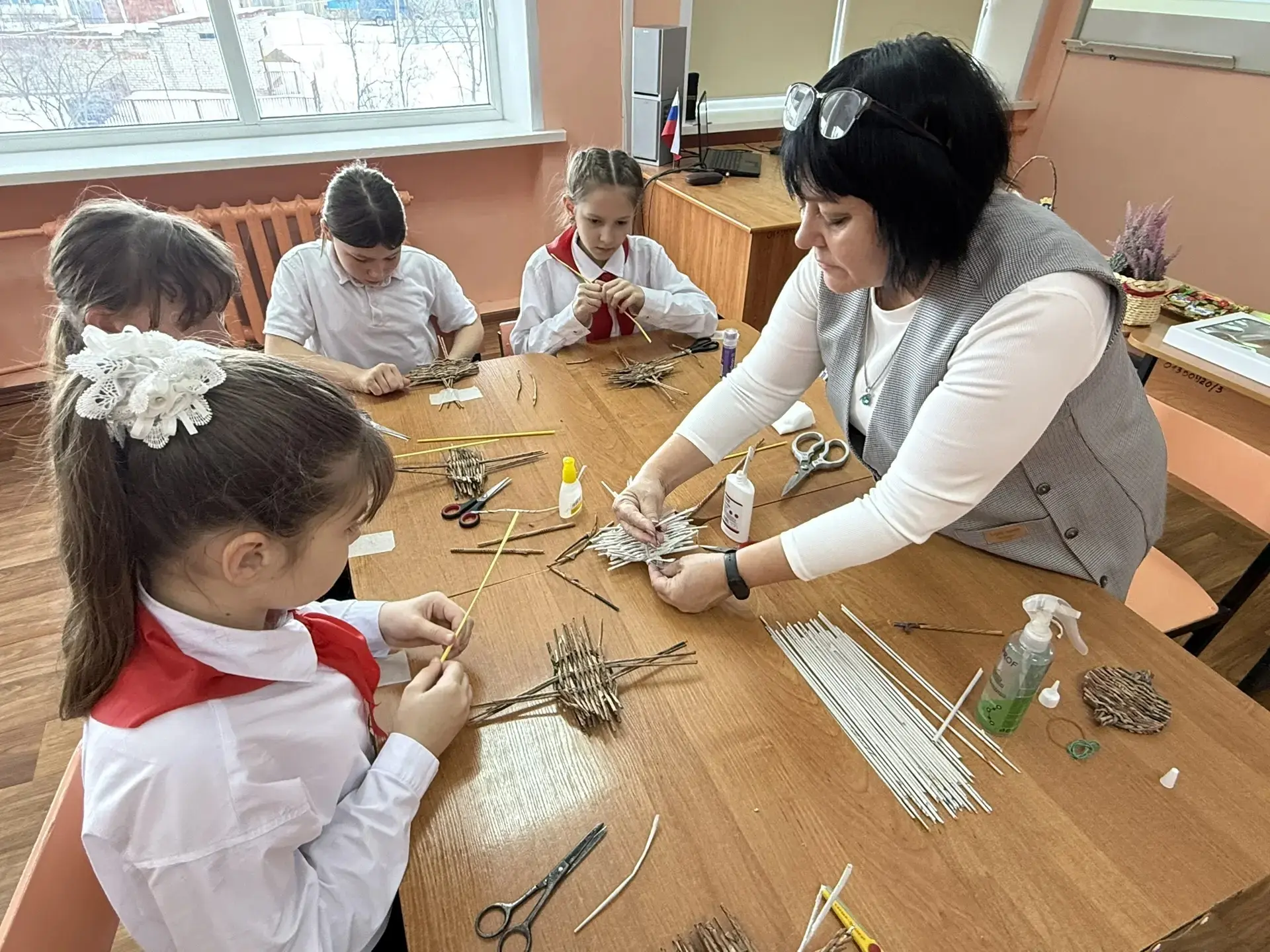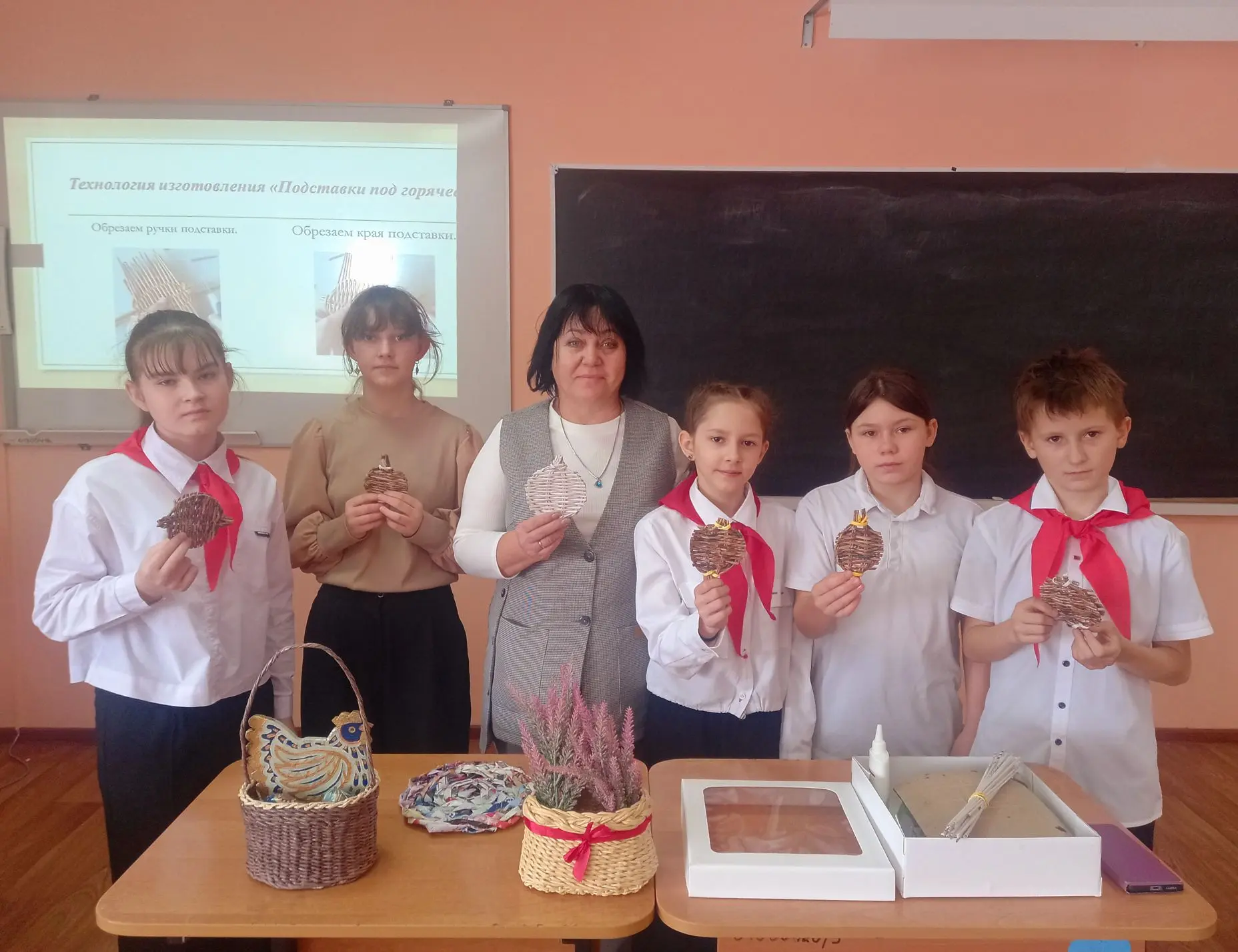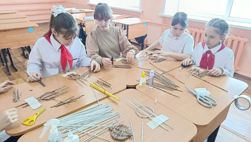 После познавательной части школьники смогли приобщиться к этому древнему ремеслу на примере материала бумажная лоза. Под руководством Людмилы Николаевны ребята с увлечением создавали свои собственные подставки под горячее – идеальные для чая или кофе. Это не только позволило им познакомиться с техникой лозоплетения, но и дало возможность почувствовать себя частью богатой культурной традиции.