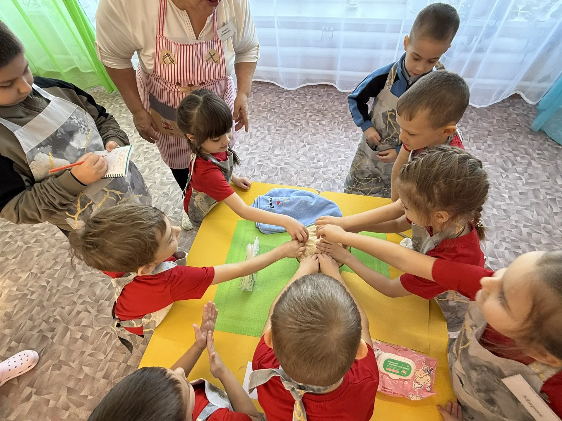 - Кулинарная мастерская — ребята смотрели, как в газированной воде «танцует» изюм, и наблюдали, как «растёт» дрожжевое тесто.