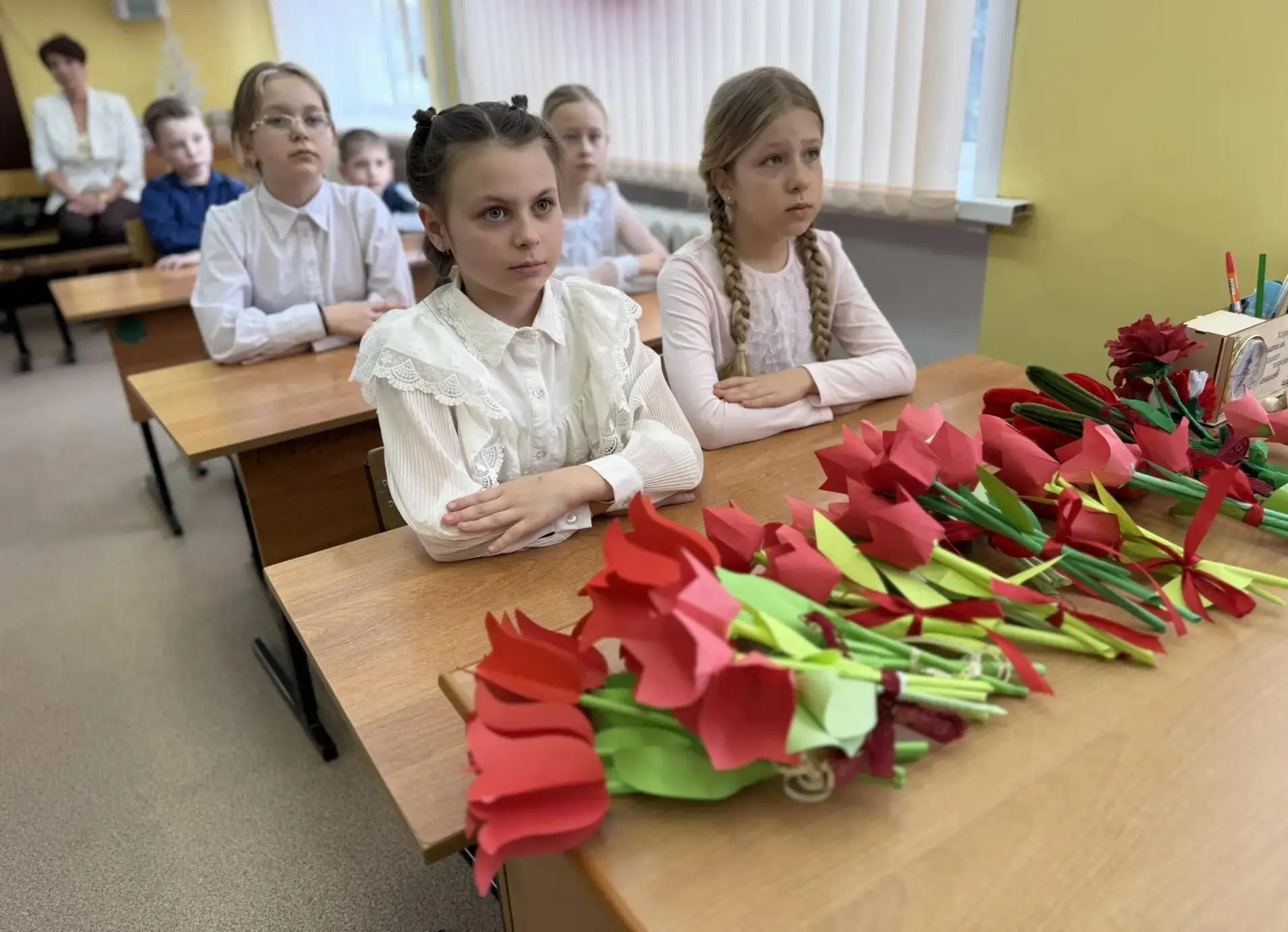 "Орлята России" вместе со своими классными руководителями изготовили цветы в технике оригами.