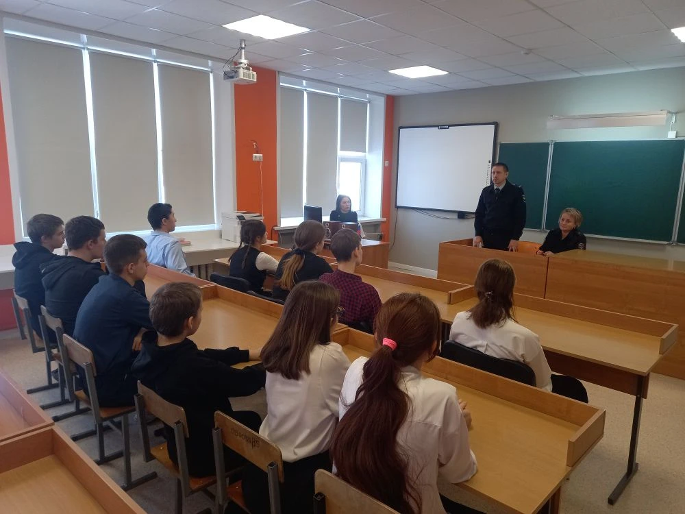 Начальник отделения по делам несовершеннолетних майор полиции Наталья Владимировна Асеева рассказала присутствующим о новых мошеннических схемах. Наталья Владимировна объяснила, кто такие дропперы — посредники мошенников, основная задача которых перевести деньги на другой счёт или обналичить и передать следующему участнику схемы. По закону дропперы считаются соучастниками мошенников. Чаще всего дропперами становятся подростки, которые нуждаются в деньгах.