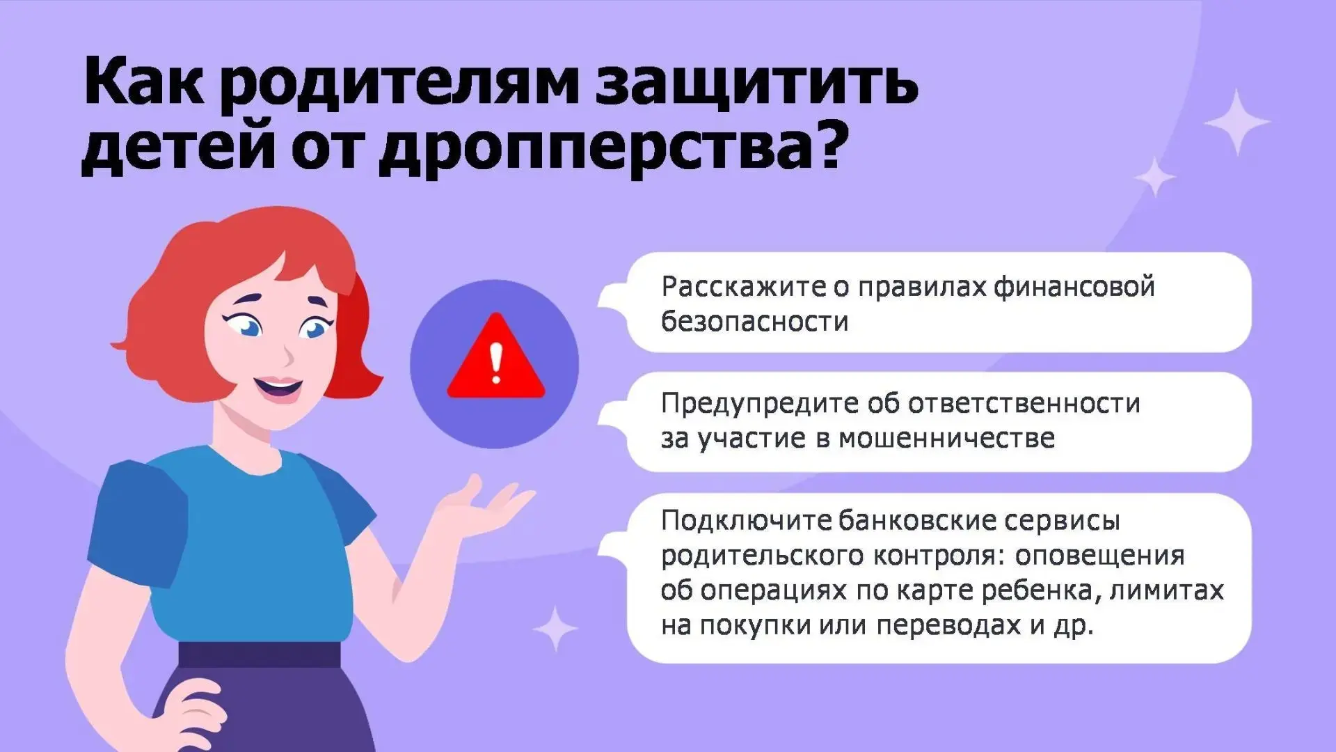 Дорогие родители и ученики! В последнее время распространены случаи мошенничества, известного как «дропперство». Это явление представляет собой использование обманным путем ресурсов, данных или средств других людей для достижения личной выгоды. Важно быть бдительными и понимать, как избежать таких ситуаций.