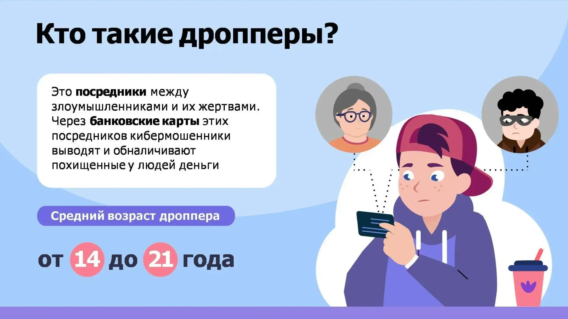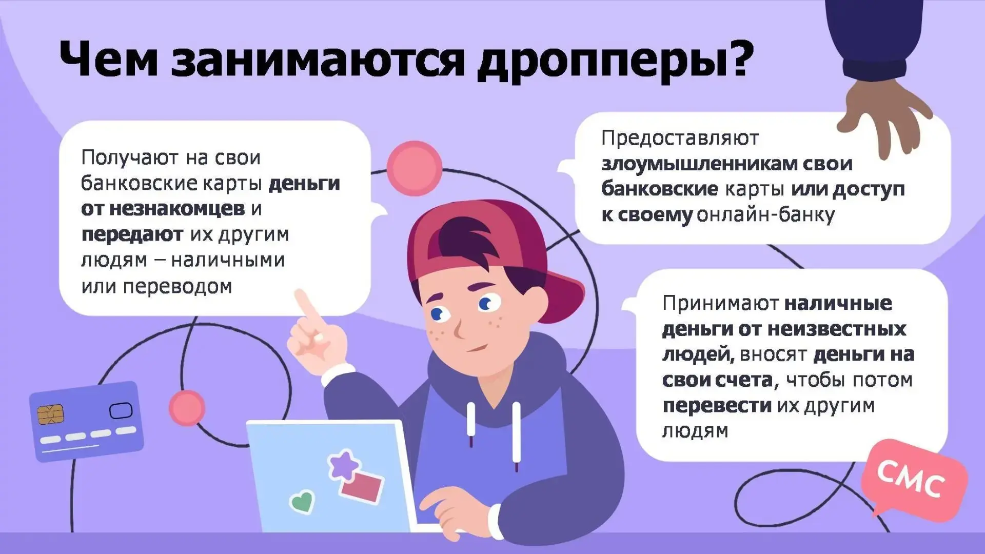 Дропперы - это лица, которые участвуют в кражах денег со счетов, сокрытии преступлений, обналичивании и легализации криминальных доходов.