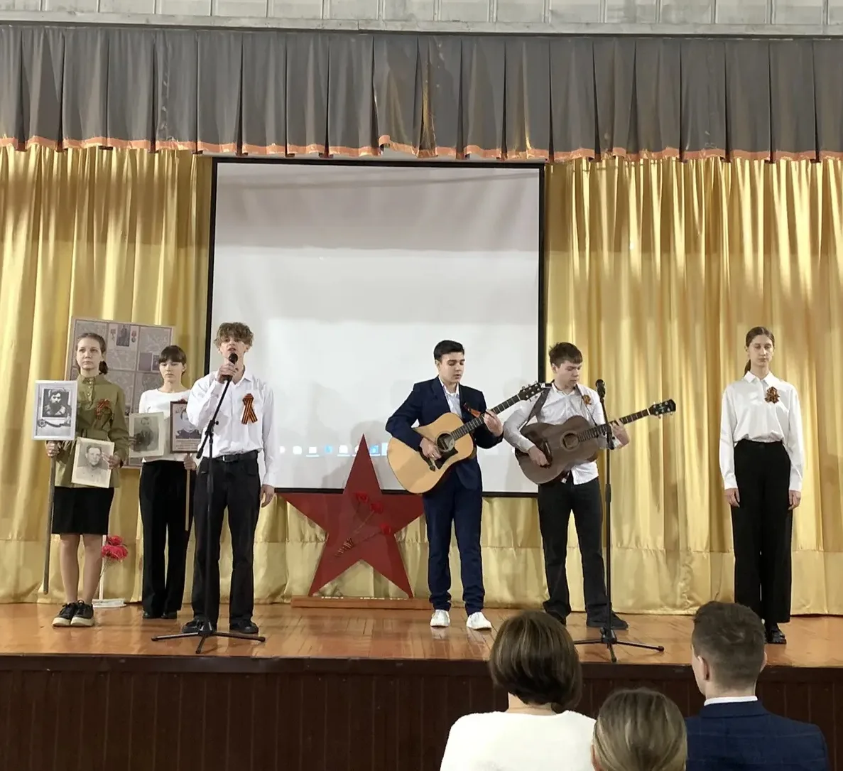 Особое внимание было уделено подвигу Сергея Андреевича Мостового. Ученики 9 «В» класса зачитали отрывки из его воспоминаний, а также цитаты из мемуаров легендарного маршала Василия Ивановича Чуйкова. Школьный ансамбль под руководством Селивановой С. А. и солисты – Каширин Данил, Исмаилов Расим, Плужников Арсений – исполняли песни о войне.