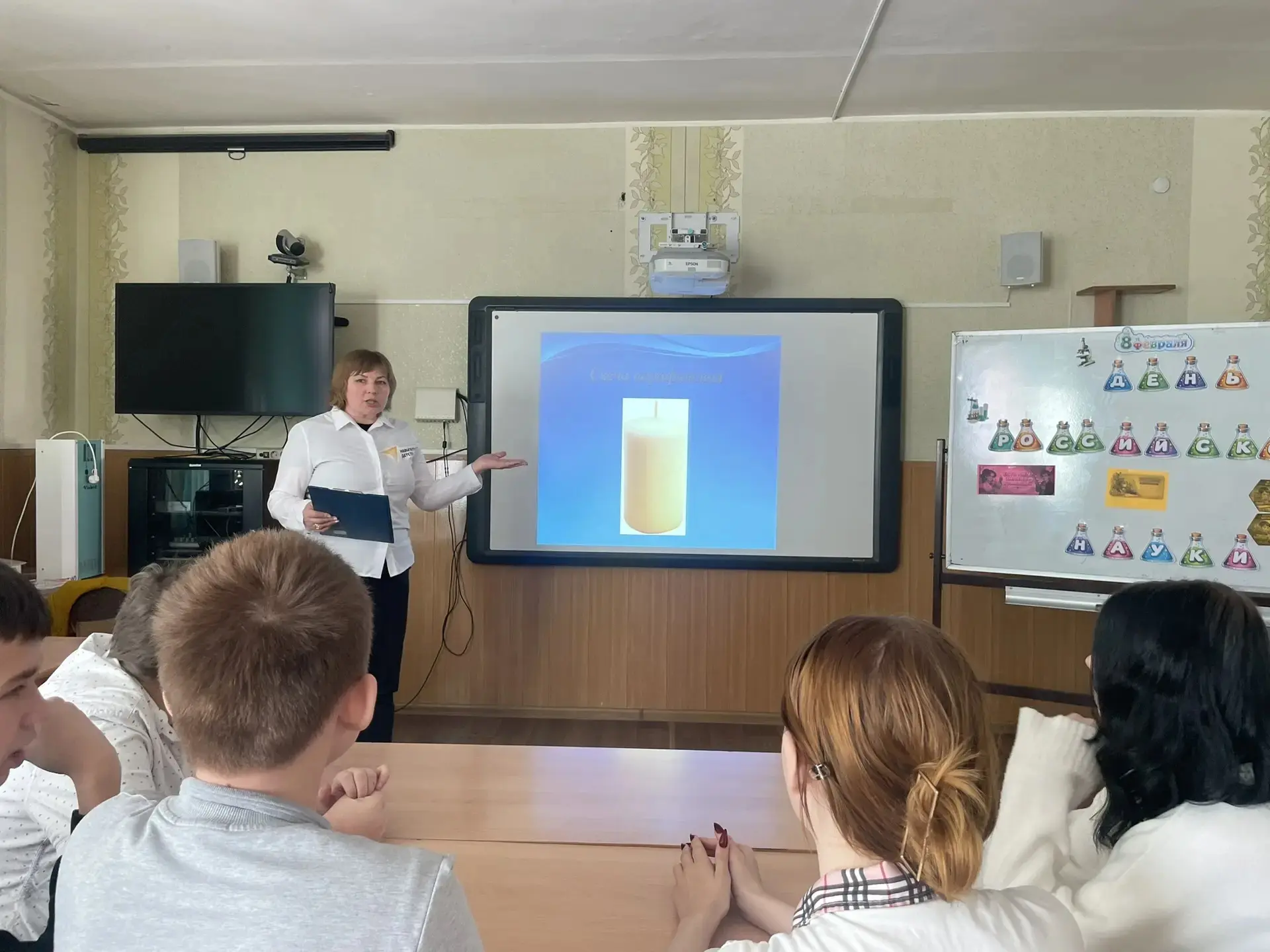 В преддверии праздника советник директора по вопросам воспитания и взаимодействию с детскими общественными объединениями Краснощековой Е. И. совместно с активистами первичного отделения движения первых нашей школы организовали и провели интерактивную выставку «Наука на ладошке». В ходе мероприятия обучающиеся исследовали "Лабиринты химии", отвечали на вопросы и получили массу положительных эмоций.