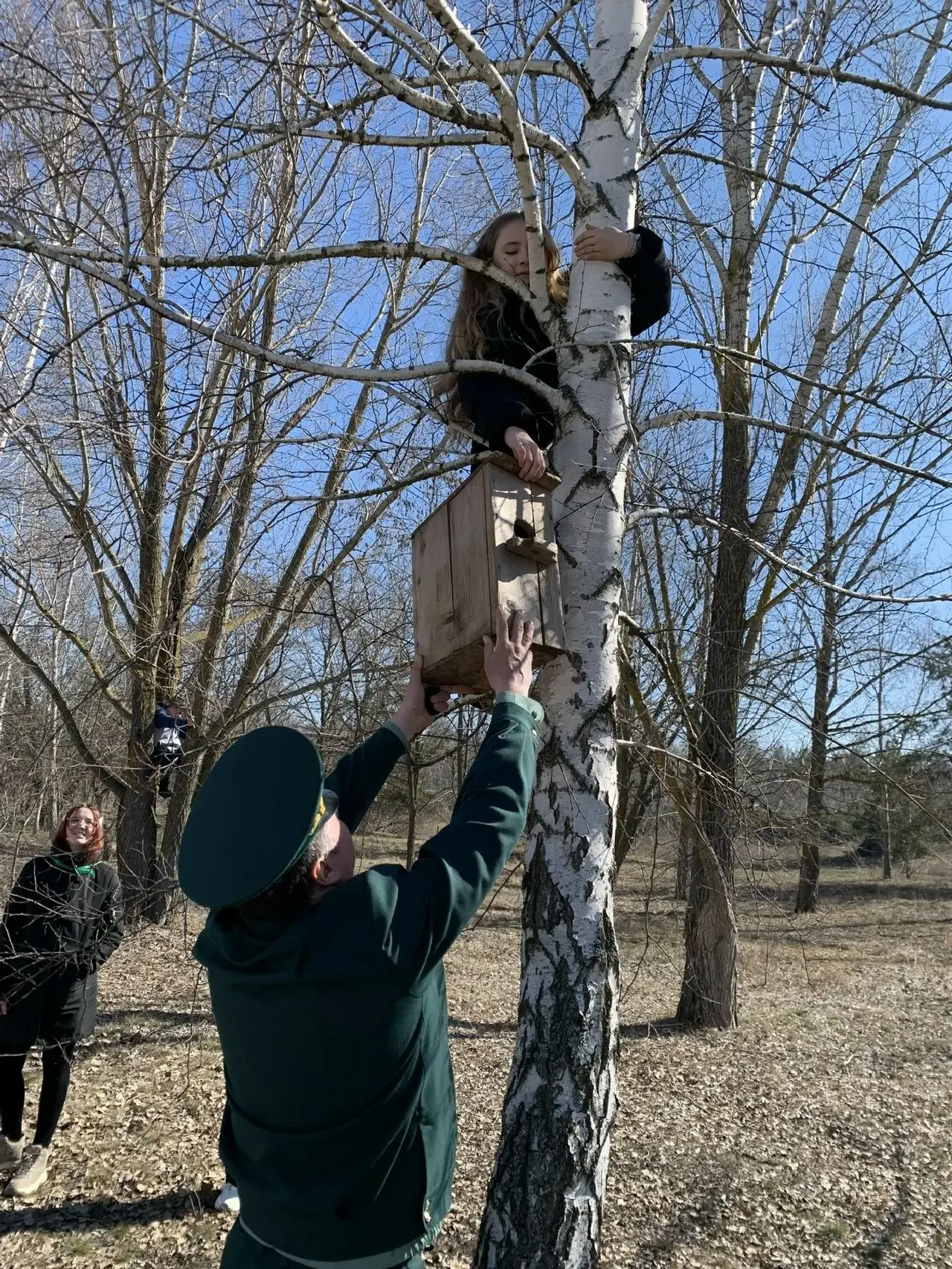 Каждый скворечник был надёжно закреплён на высоте 3–4 метров — так, чтобы он был недоступен для хищников и безопасен для птиц. Участники лесничества позаботились и о деталях: убедились, что летки (входные отверстия) направлены в сторону от преобладающих ветров, а конструкции не раскачиваются на ветру.