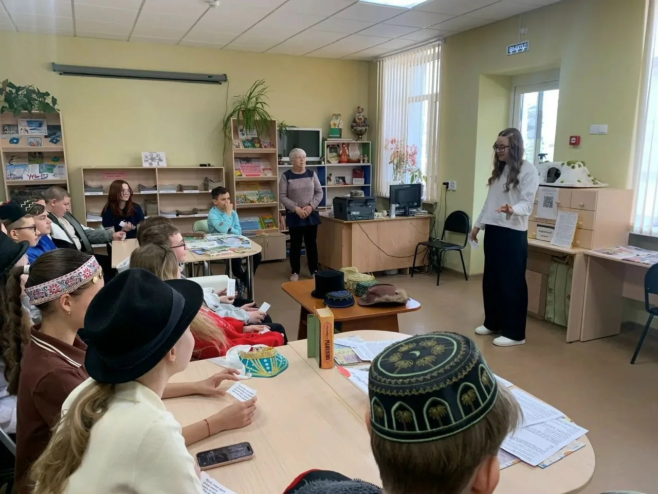 7 апреля обучающиеся 7 А класса с классным руководителем Комиссаровой И.В. посетили увлекательное мероприятие, посвящённое единению народов России. Его провела библиотекарь Вера Ивановна — настоящий энтузиаст своего дела и знаток книжного фонда.