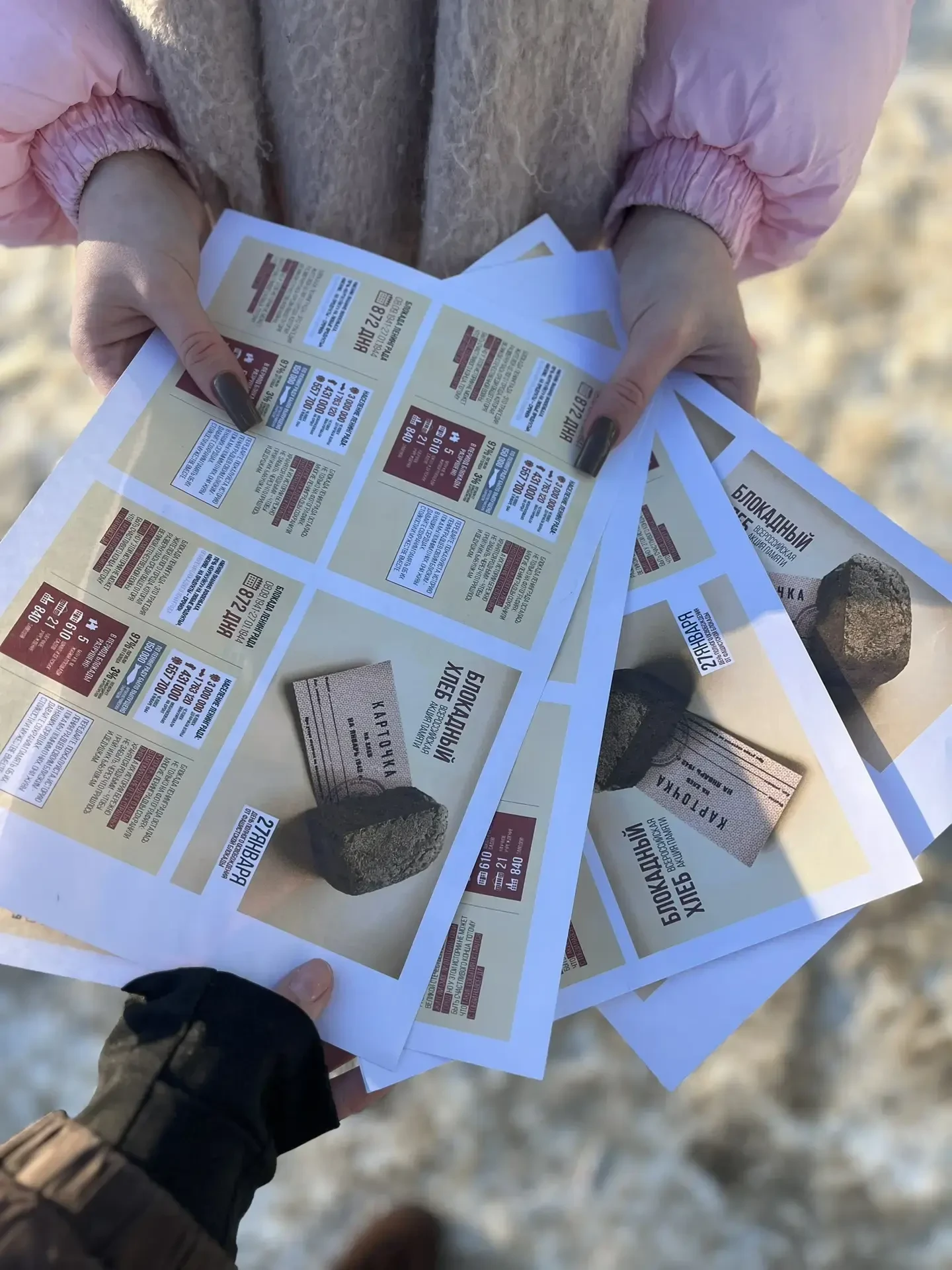 Во время акции волонтеры выходят на улицы городов и раздают прохожим информационные листовки, рассказывающие о тяжелых испытаниях ленинградцев в годы Великой Отечественной войны. Особое внимание уделяется самой главной составляющей повседневной жизни горожан в тот период – хлебу.