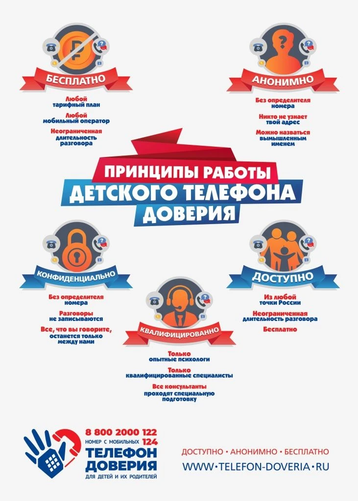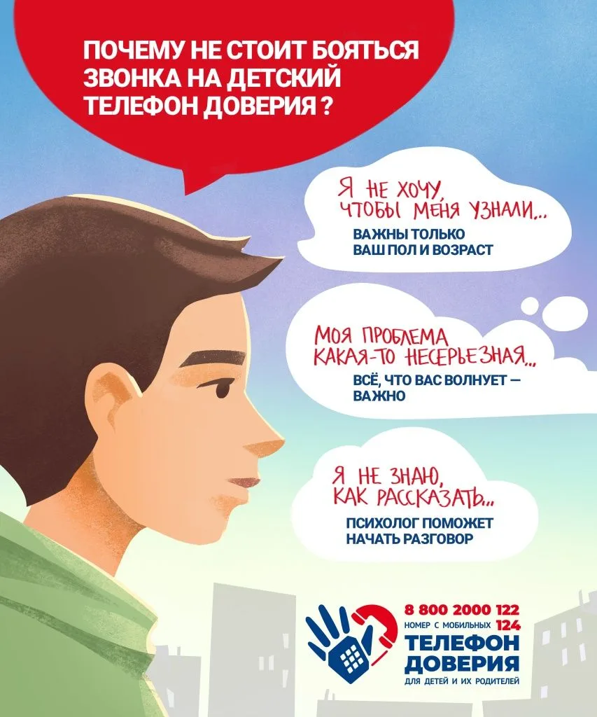 С декабря 2024 года связаться с Всероссийским детским телефоном доверия стало ещё проще: помимо номера 8-800-2000-122, доступен короткий номер 124 (с мобильного). Оба номера остаются бесплатными и доступны, вне зависимости от оператора связи.