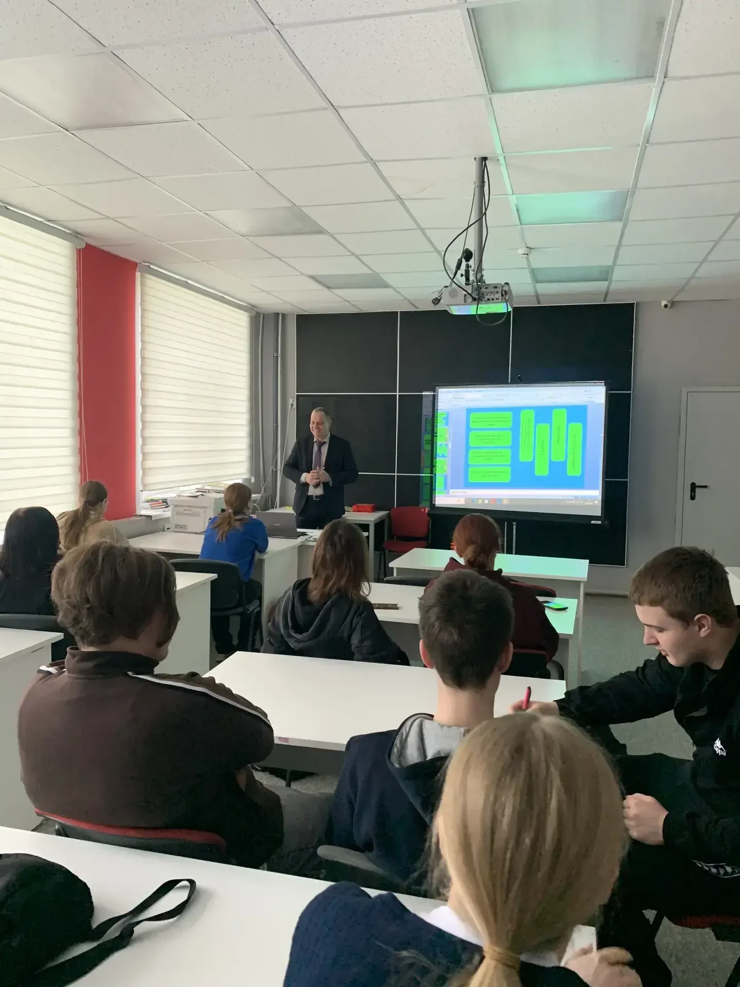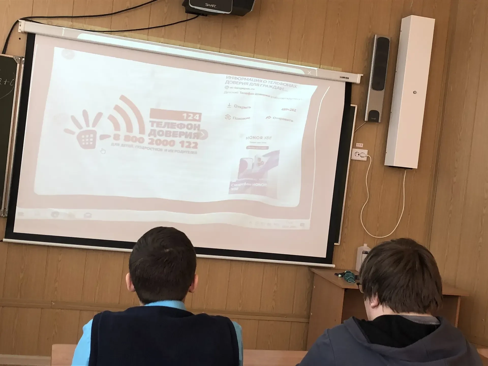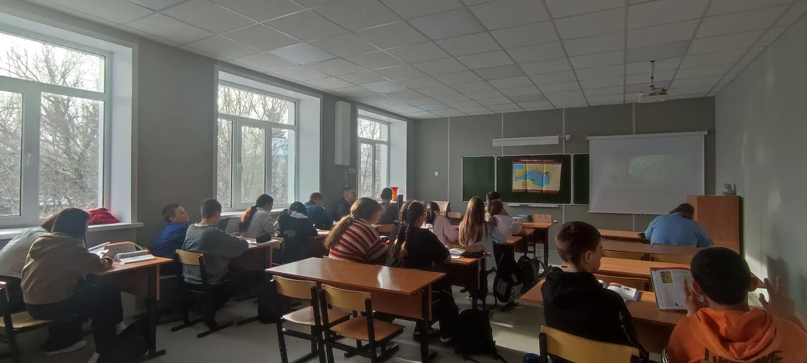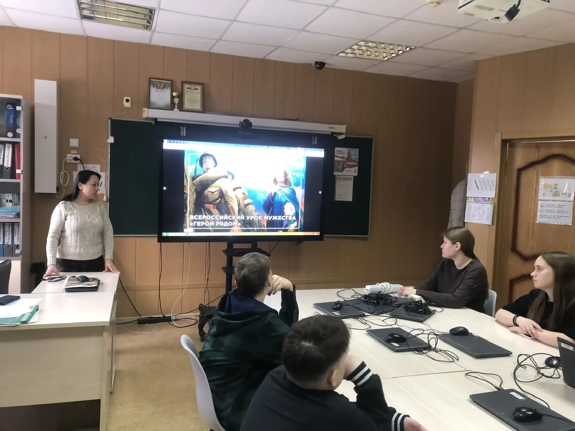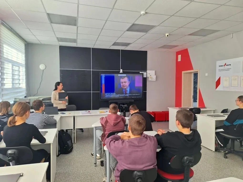 Ребята с большим вниманием и интересом смотрели видеоинтервью. Тишина в классе была особая — та, что бывает, когда слышишь что-то очень важное и сокровенное.